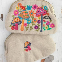 Natural Life Embroidered Coin Purse – Cream Mushroom