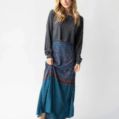 Natural Life Amy Maxi Skirt – Teal Gold Border