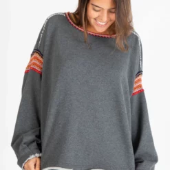Natural Life Knit Trim Sweatshirt – Charcoal
