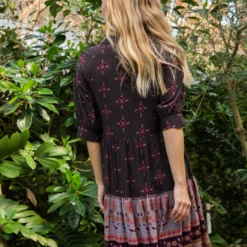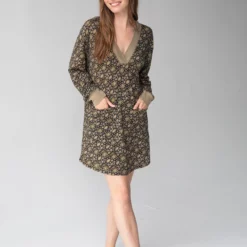 Natural Life Charlie Long Sleeve V-Neck Dress – Black Tan Daisies