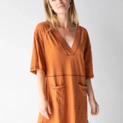 Natural Life Charlie V-Neck Dress – Burnt Orange