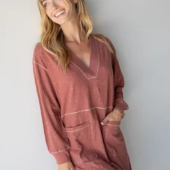 Natural Life Charlie Long Sleeve V-Neck Dress – Rust