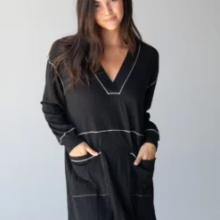 Natural Life Charlie Long Sleeve V-Neck Dress – Black