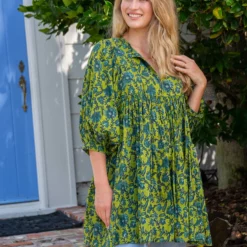 Natural Life Aimee Mini Tunic Dress – Blue Green Floral