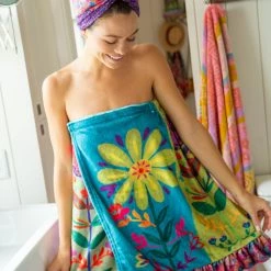 Natural Life Cotton Bungalow Beach Towel – Turquoise Mandala Border