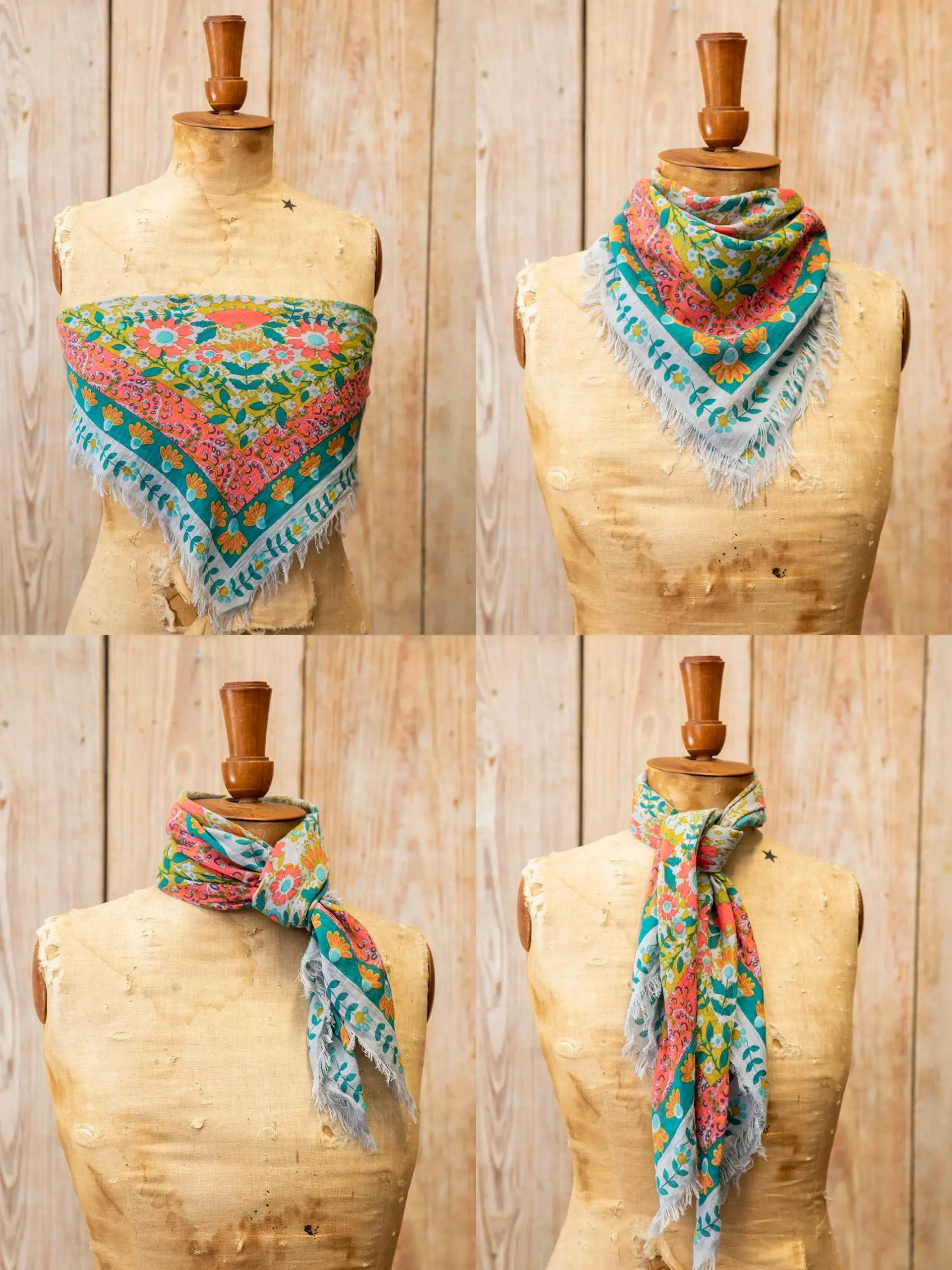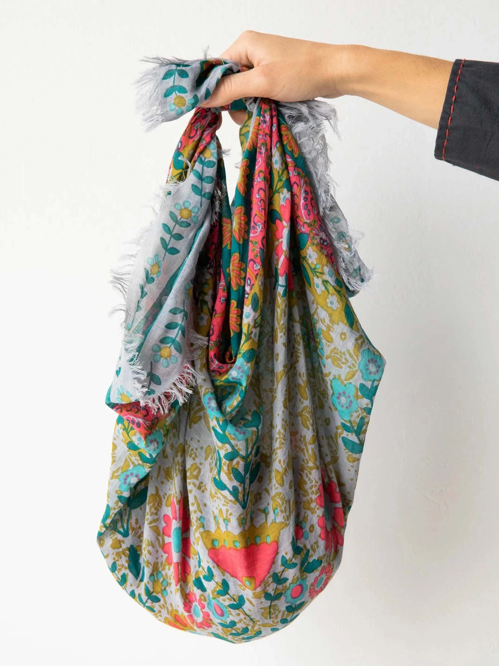 This gorgeous, fringed scarf will become your essential anytime accessory — even gift wrap or a little tote! What?? Yes – you can wear this 4-in-1 Scarf as a belt or around your neck as the prettiest little boho scarf you’ve ever seen. BUT – you can transform this cute scarf into a BAG! You can even use it as gift wrap and then it BECOMES part of the gift! Boho creativity at its best!