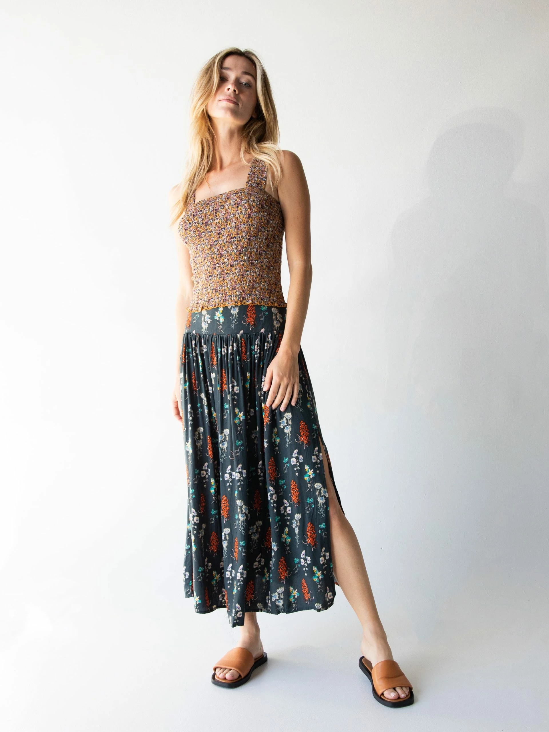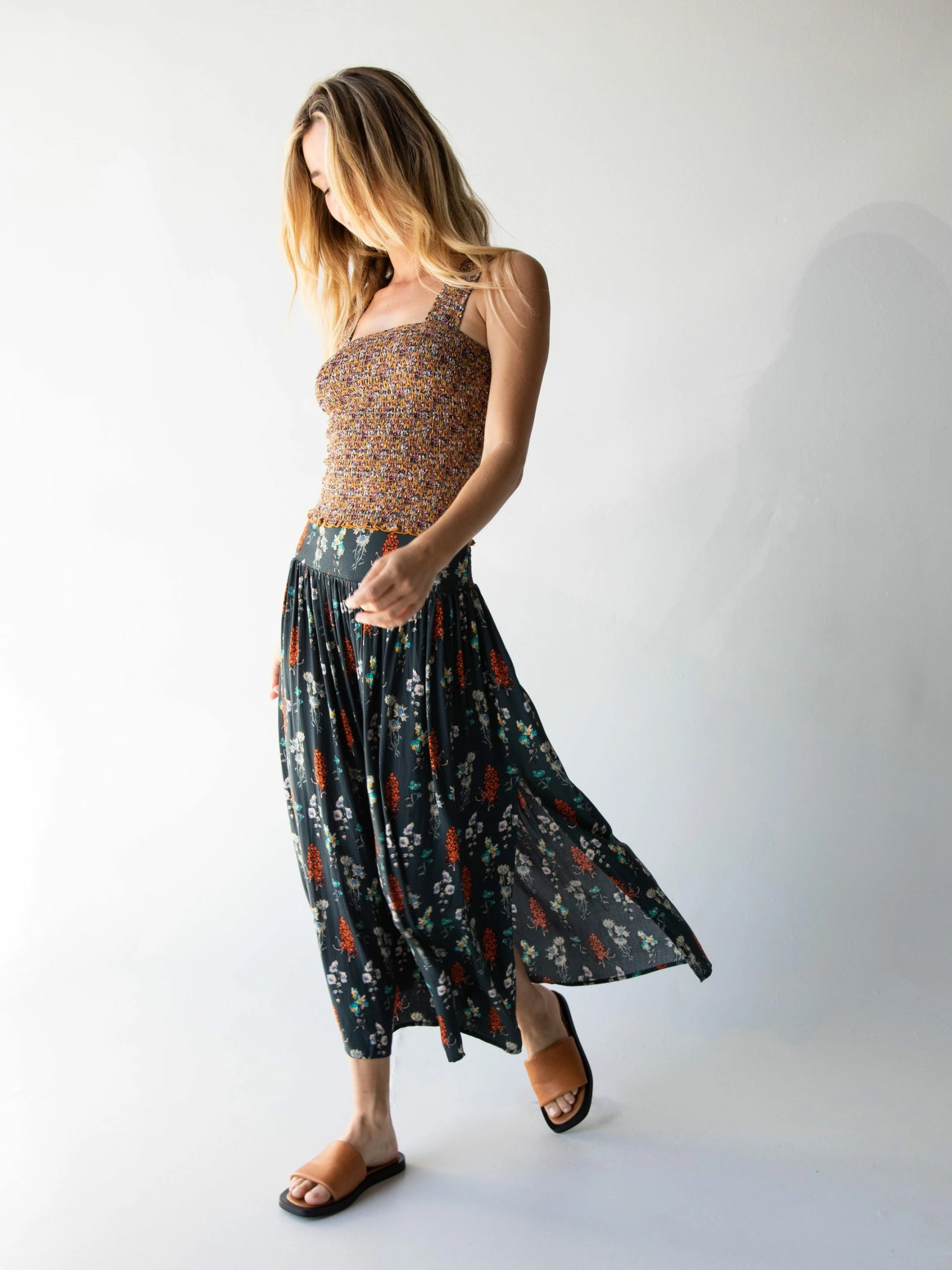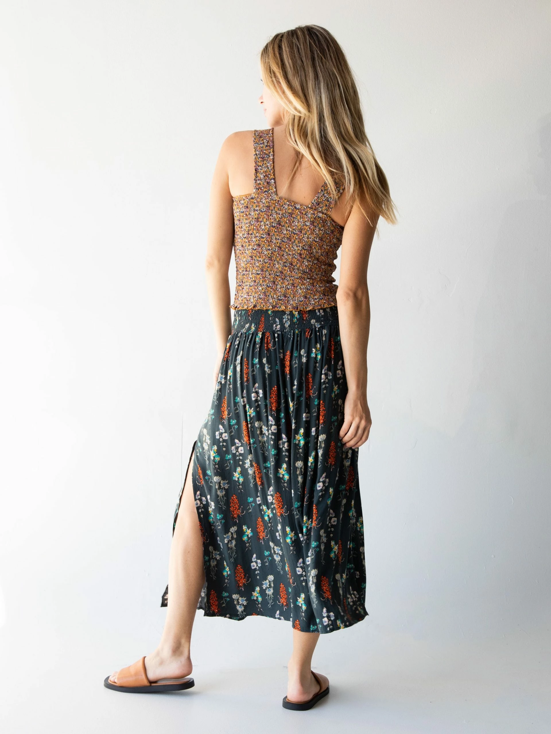 Natural Life Addie Midi Skirt – Charcoal Bouquet