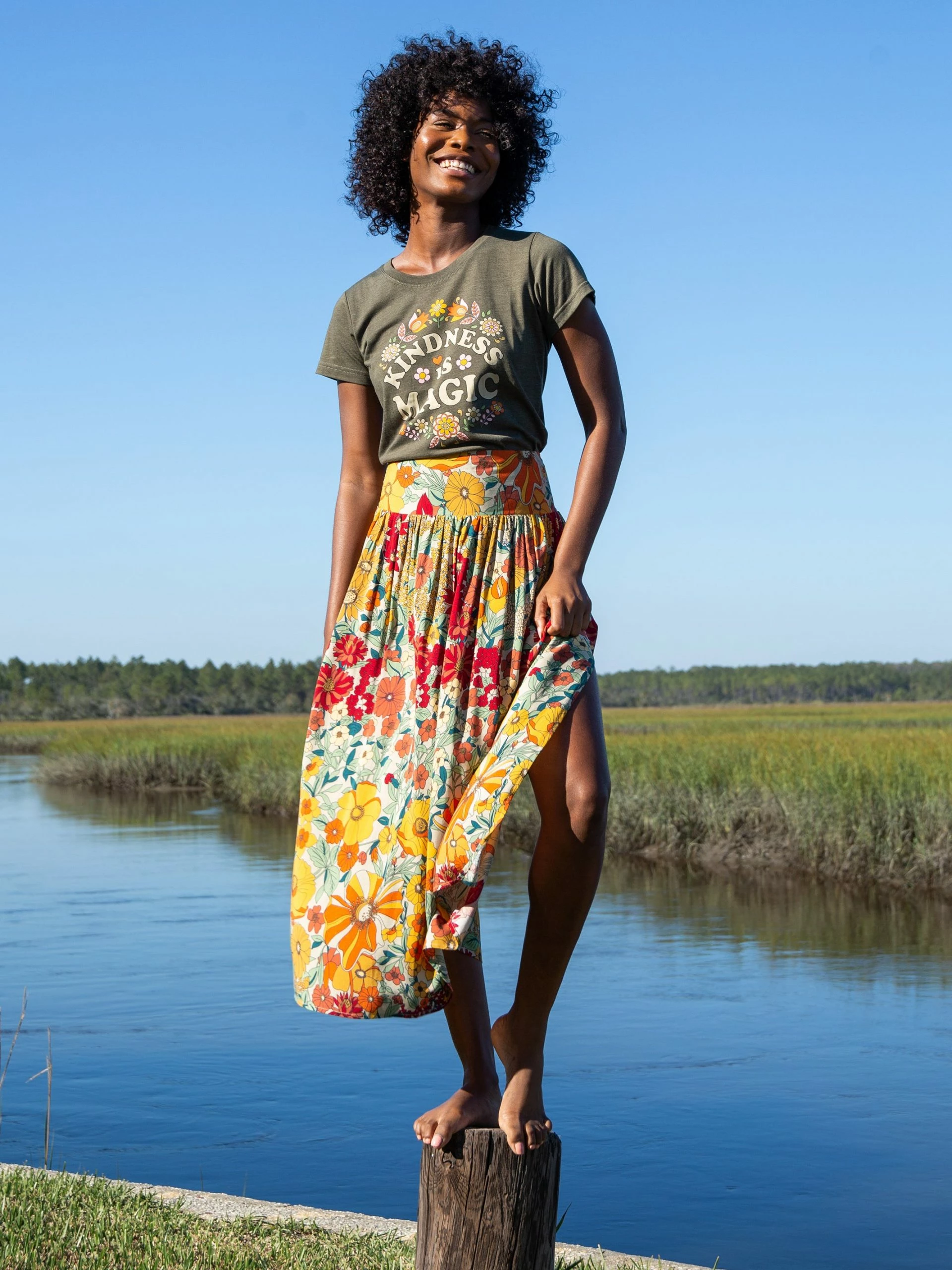 Natural Life Addie Midi Skirt – Gold Vintage Floral