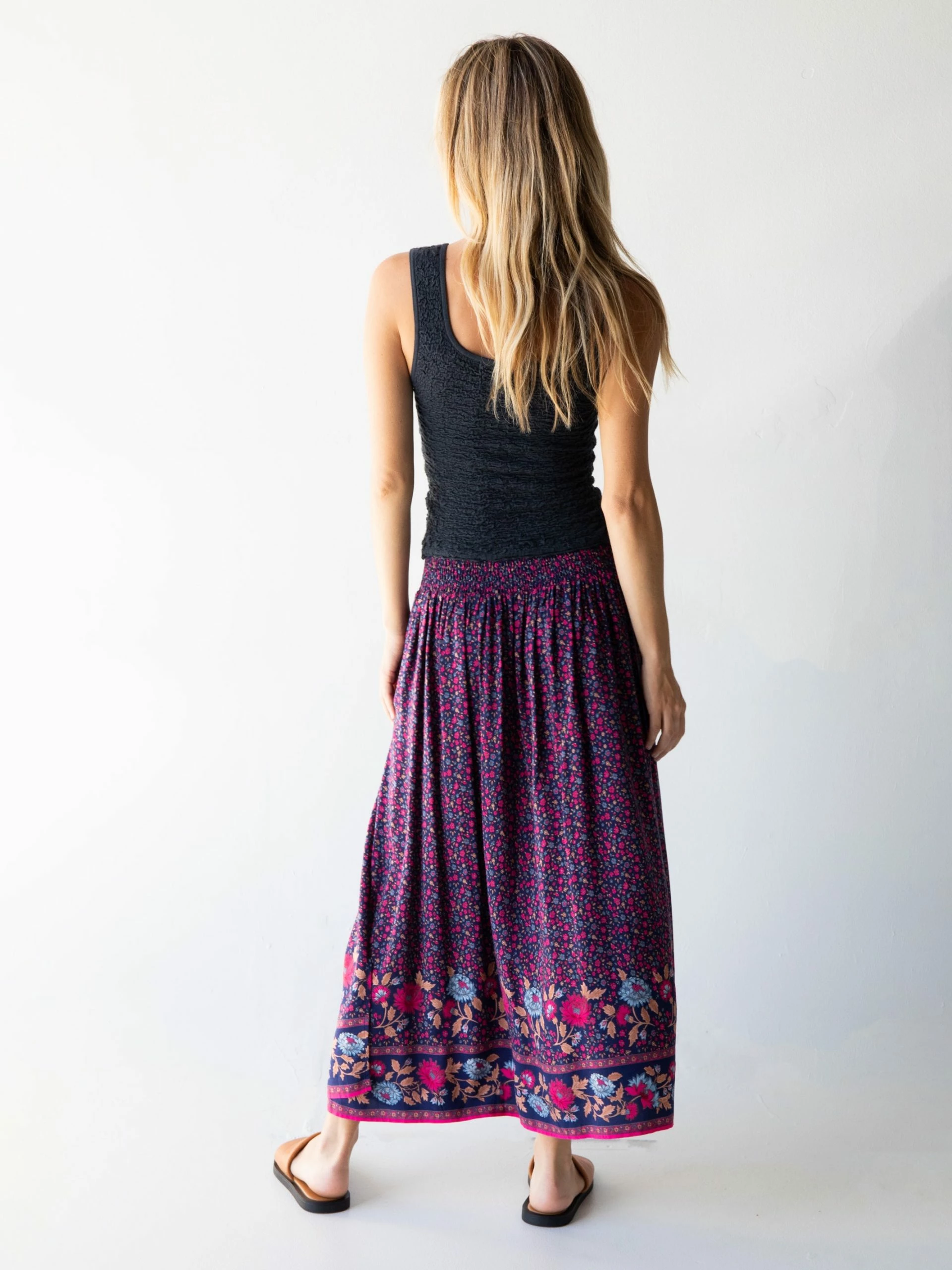 The Addie Skirt is effortlessly easy to wear with almost anything in your closet! Boots, Birks, or sneakers? Yep. Jacket, tee, or sweater? Absolutely! Dressed up or down, the Addie Skirt is a simple choice for everyday or ANY day! The side slit makes walking easy, and the smocked back and pleats create a comfy, yet flowy, fit. If you’re not sure what to wear, choose the Addie Skirt and it will be just right.