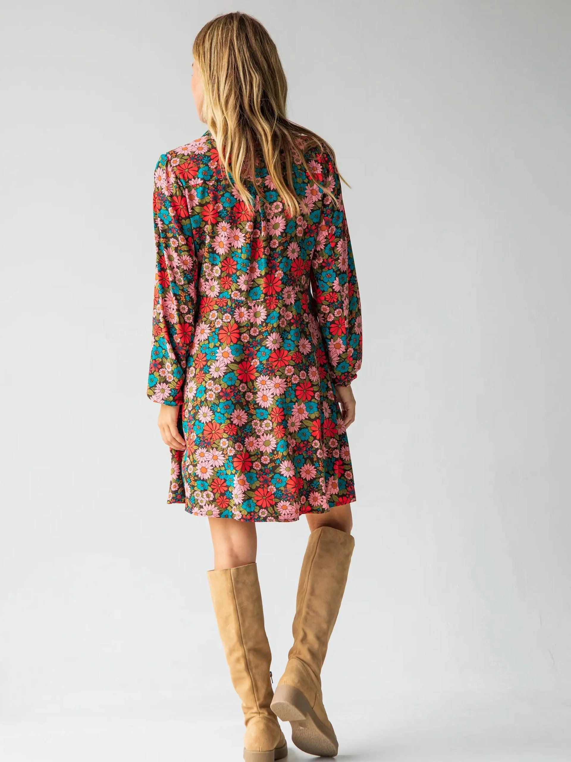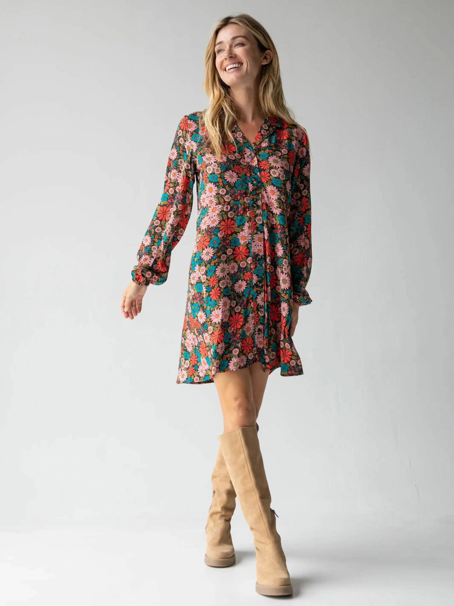 Natural Life Ansley Woven Tunic Shirt Dress – Coral Turquoise Floral