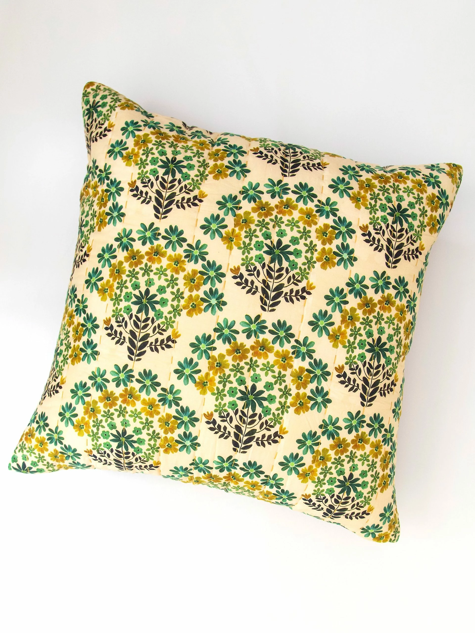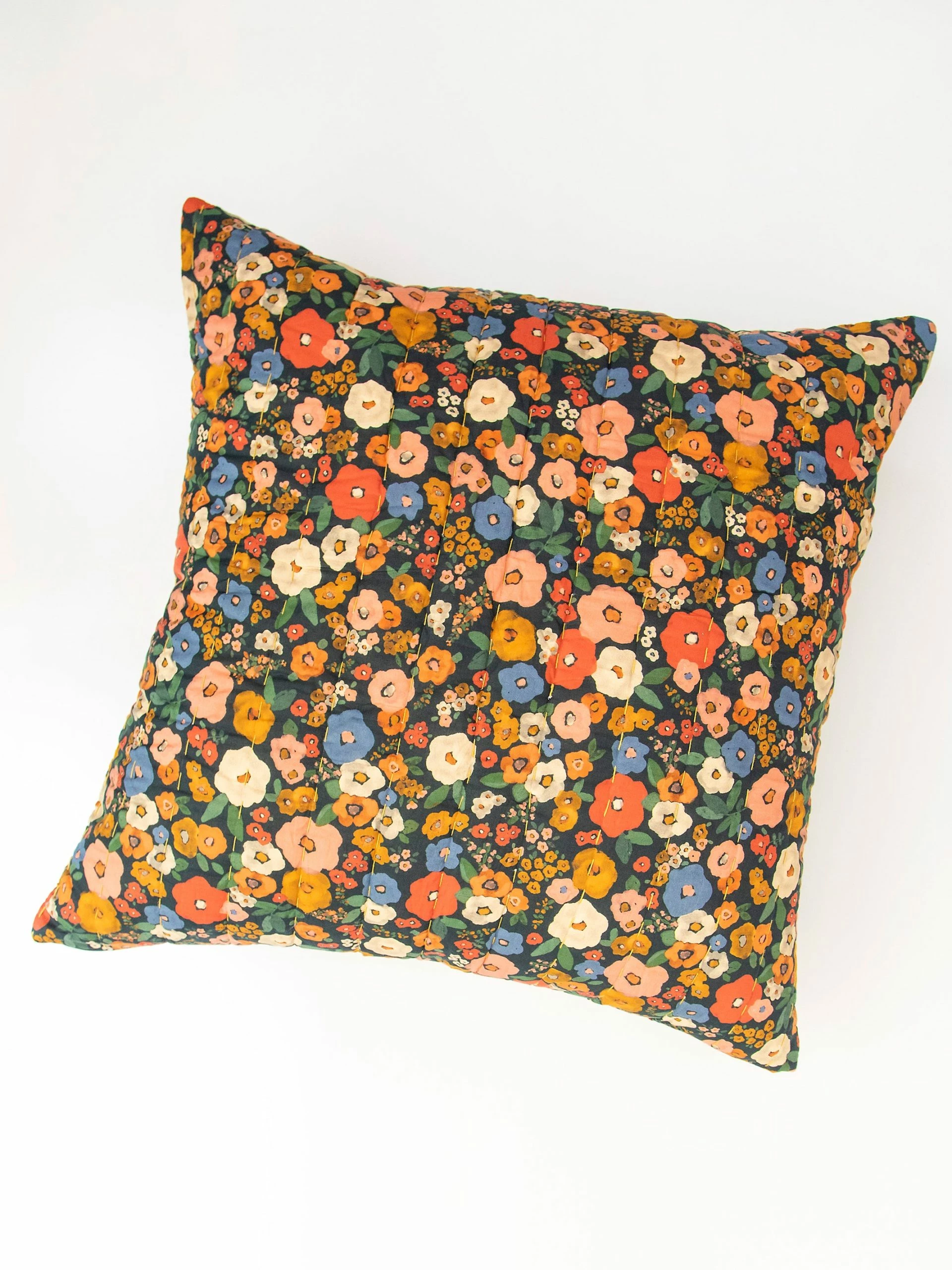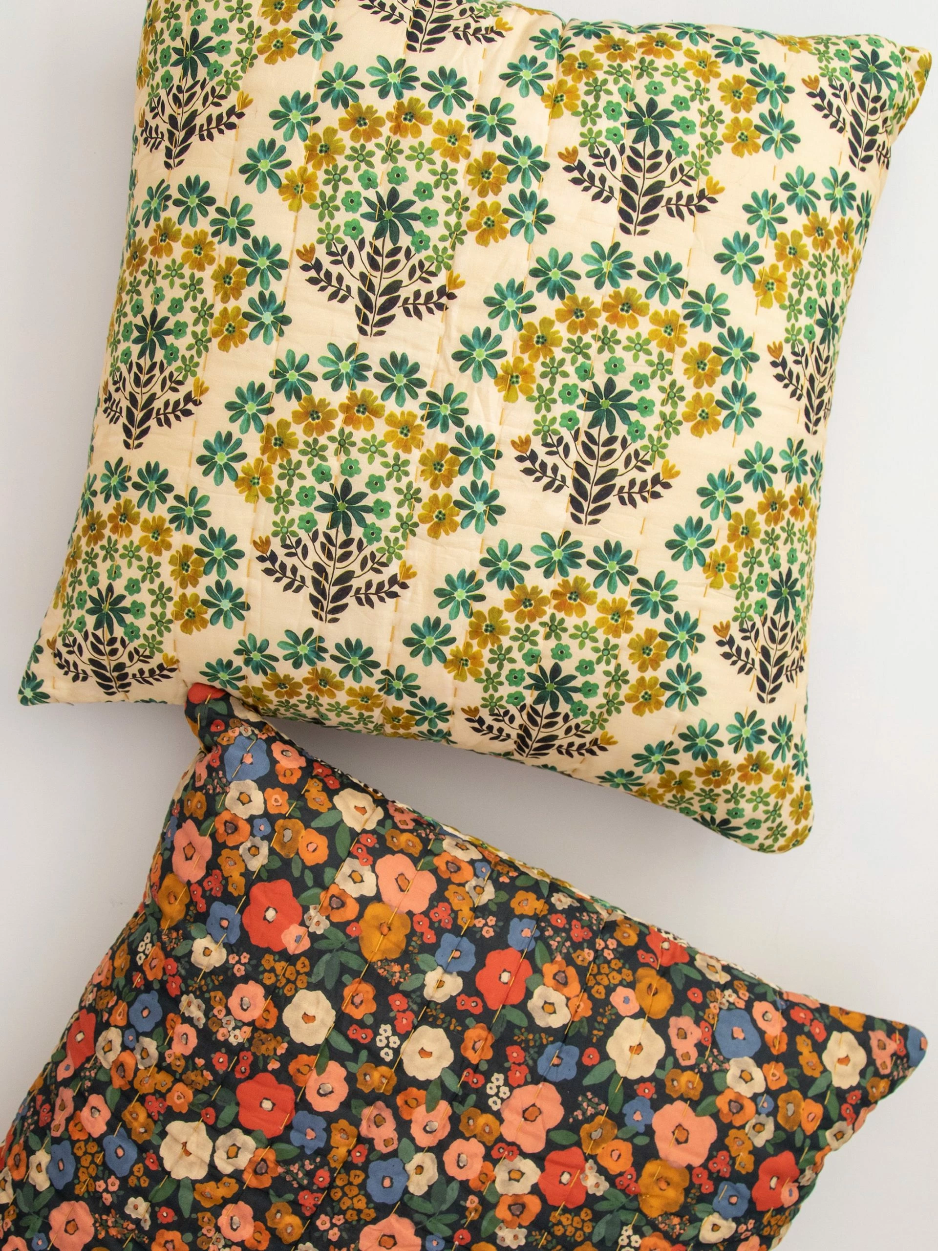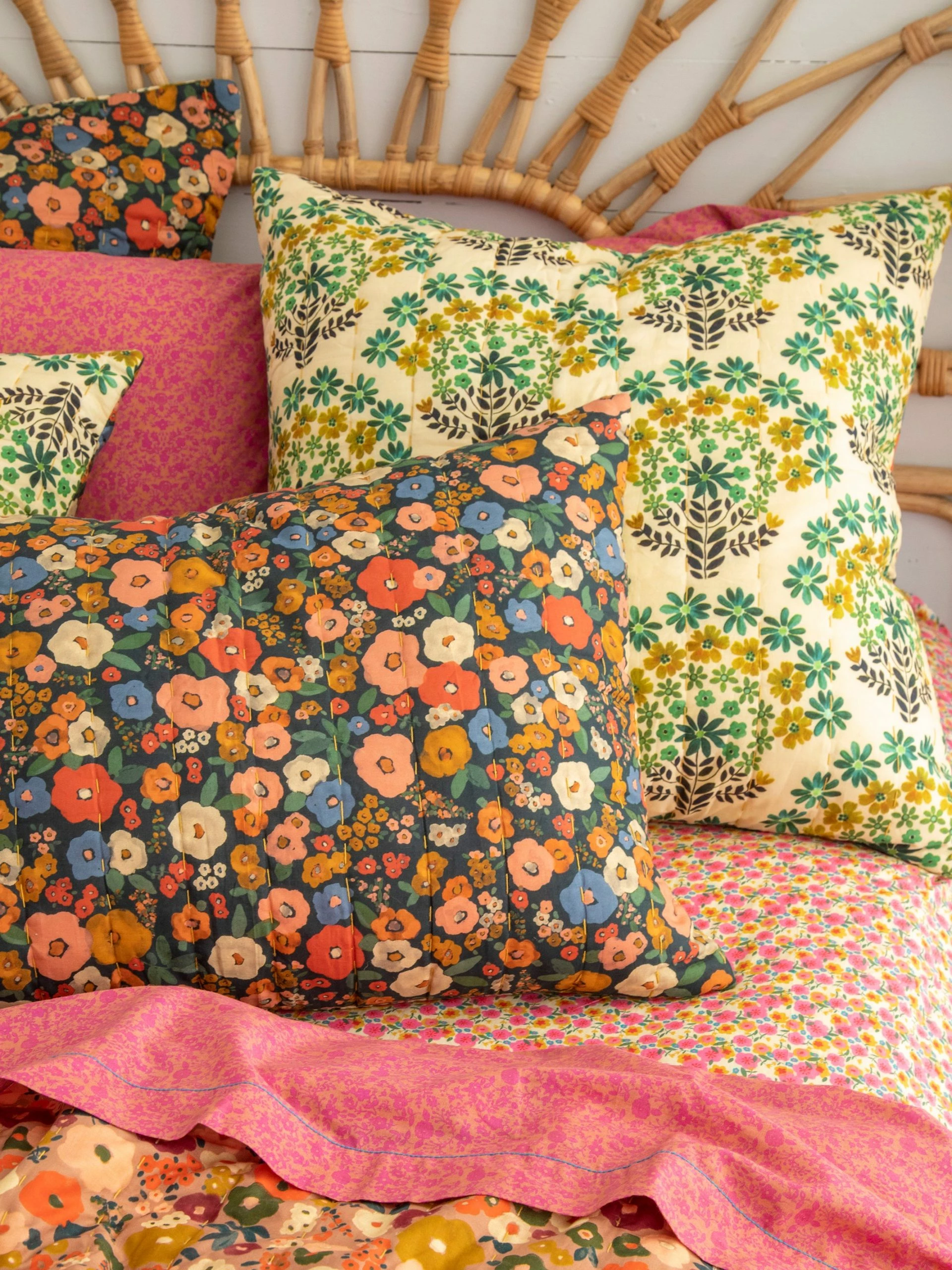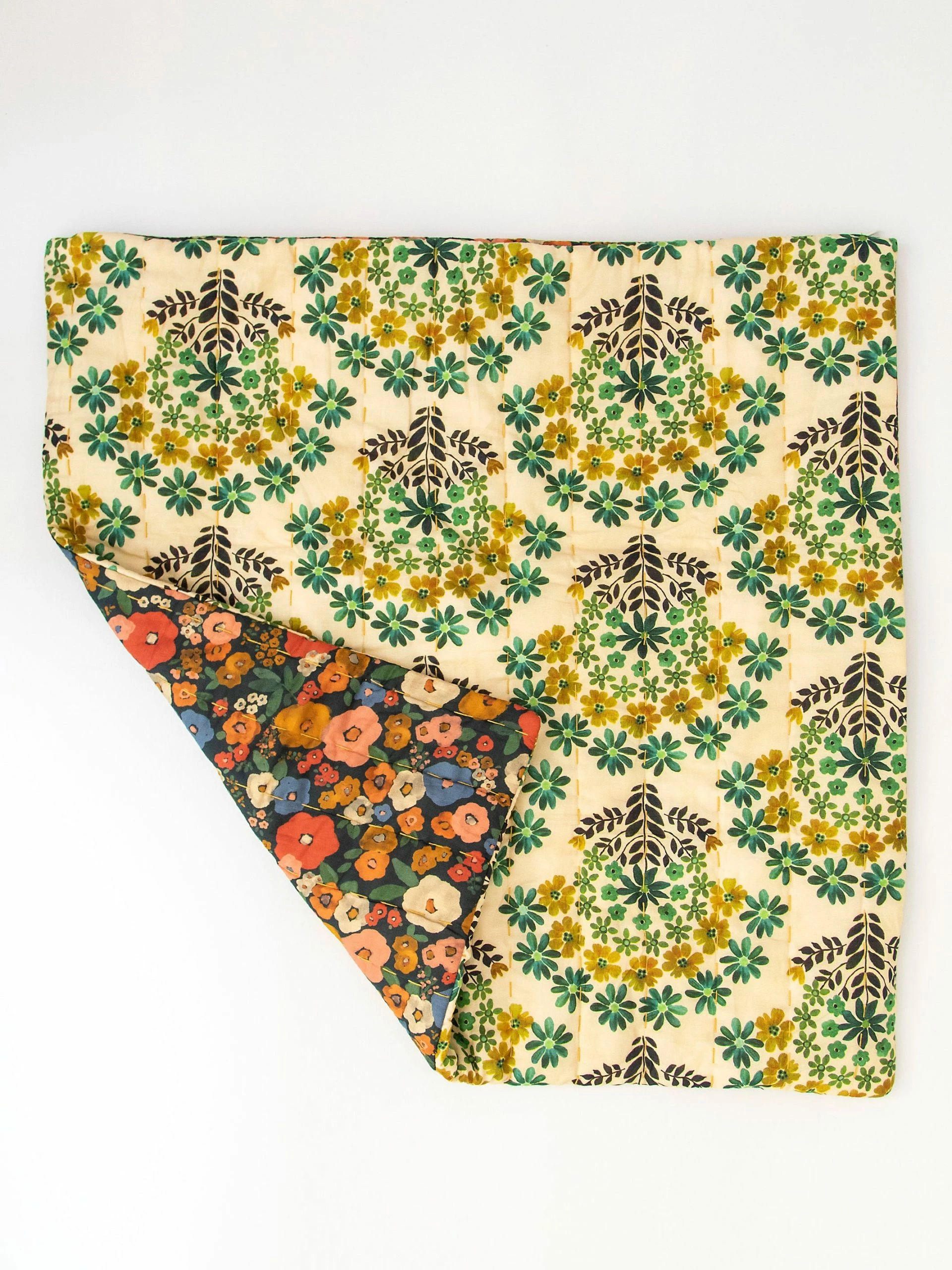 Beautify your bohemian bungalow with bedding that’s just as comfy as it is beautiful. This individual Euro Sham is reversible, so you can change up your bedding as often as you want! Give your bedroom a COMPLETELY new look on a regular old Monday or Tuesday. Change is fun and adds new beauty to behold! This gorgeous teal design with giant boho flowers reverses to a charming floral pattern with more neutral earth tones! The best news is that we intentionally designed the pillow shams to BLEND with the teal Ashley Quilt instead of match it exactly (more prints = more boho FUN)! Switch up — mix it up! It’s made of the coziest lightweight cotton and has Kantha style stitching to give it a vintage feel. Complete the set with the teal quilt and you’ll get to enjoy FOUR prints! We also have Standard Shams in this pattern! By snagging the standard pillow shams along with the Euro Shams, you can display ALL prints at the same time! Mixing prints is so FUN! This bedding gets even better if you add our Mix and Match Sheets to keep you snuggled in cozy comfort every day of the year. Euro Shams are sold individually.