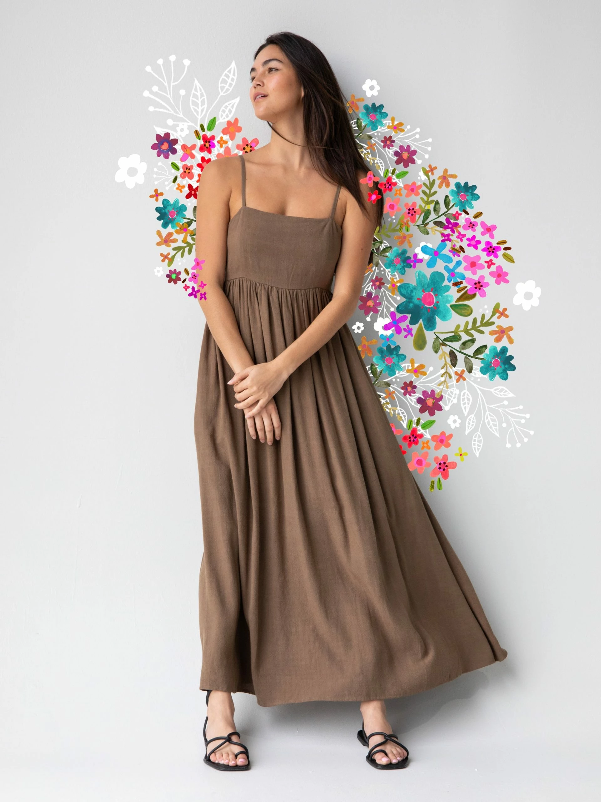 Meet the Bailey — a solid maxi dress you’ll love, in the way it looks, the way it flows, and the way it feels. A flattering empire waist gathers and flows into a full maxi skirt that sweeps your feet in style. The adjustable straps and smocking in the back allow for the best fit. The soft woven fabric gives it a textured look and feel you’ll love. Bailey has pockets and the ability to be worn at any dressy gathering or thrown on to wear out and about just because you want to feel and look your best self.