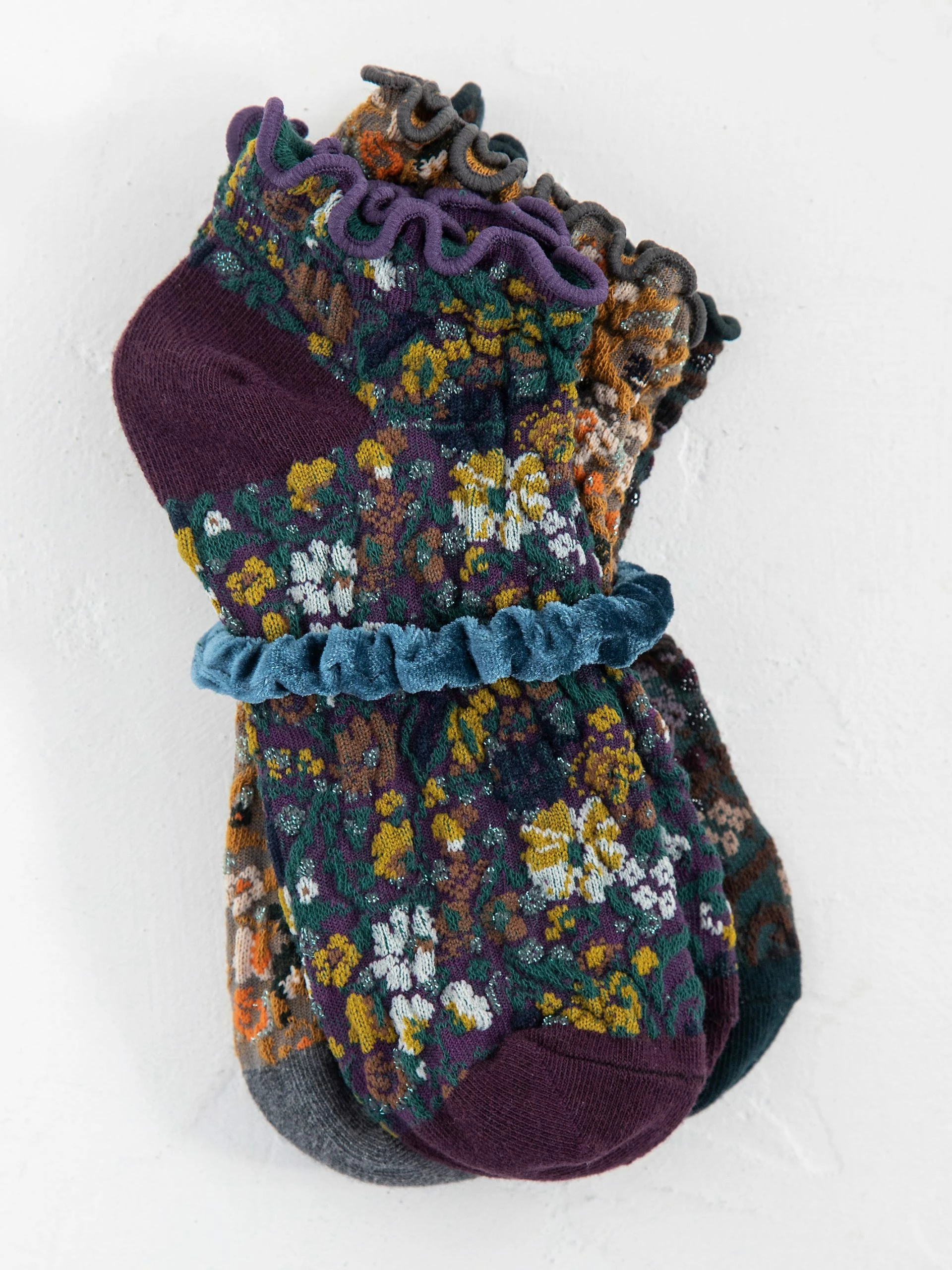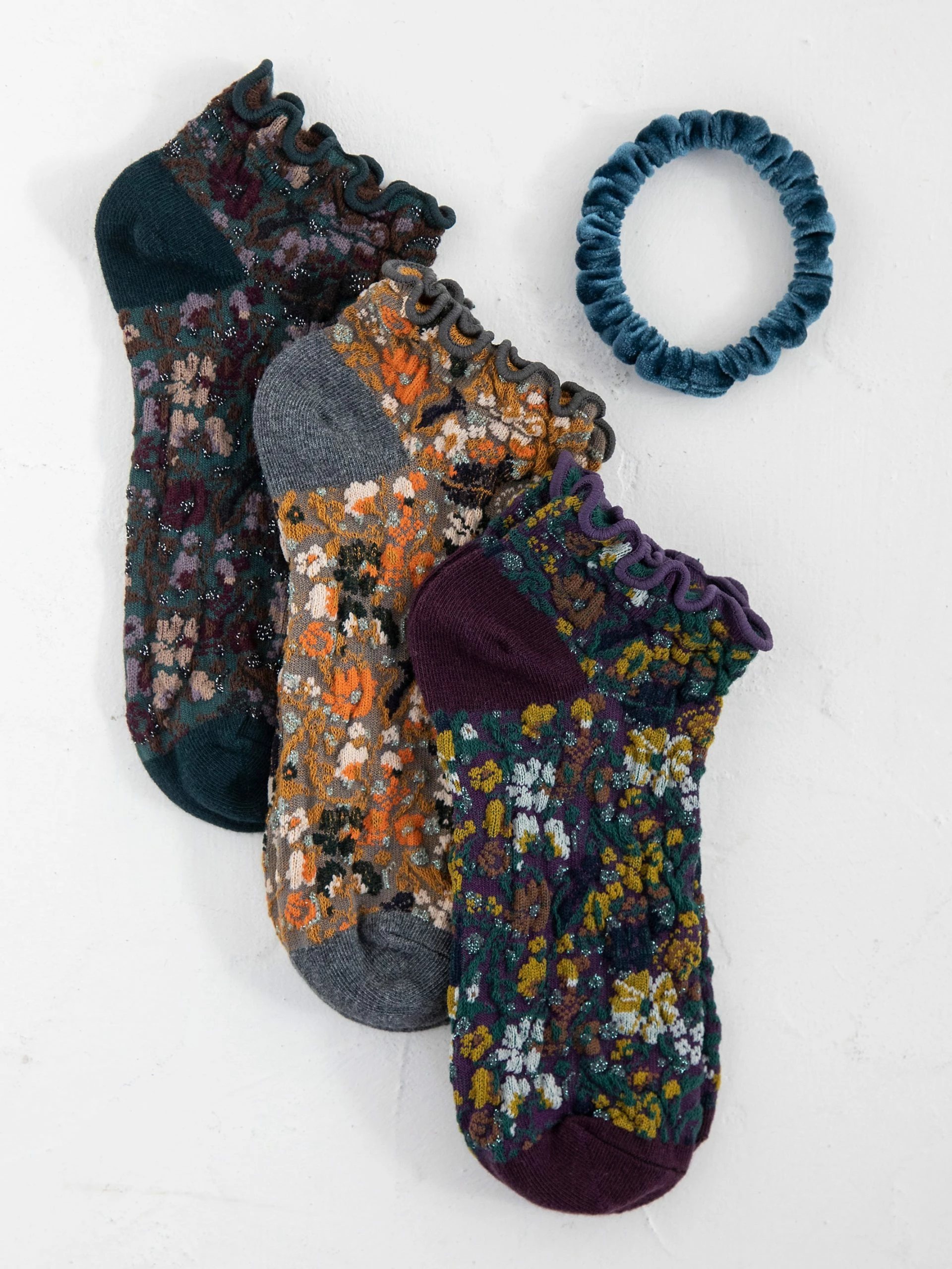 Natural Life Blossom Ankle Socks & Scrunchie, Set Of 3 – Dark Floral