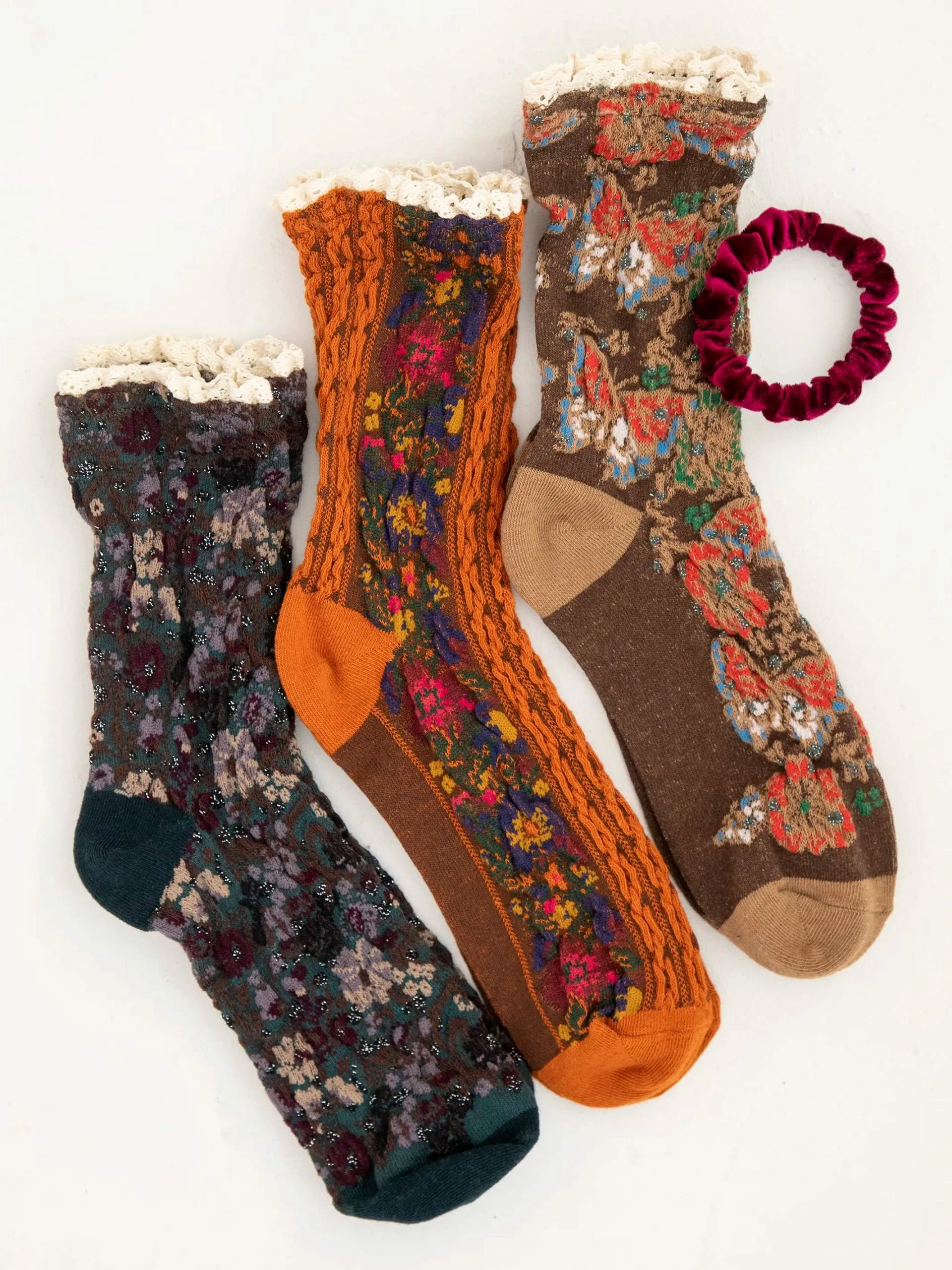 Natural Life Blossom Socks & Scrunchie, Set Of 3 – Rust
