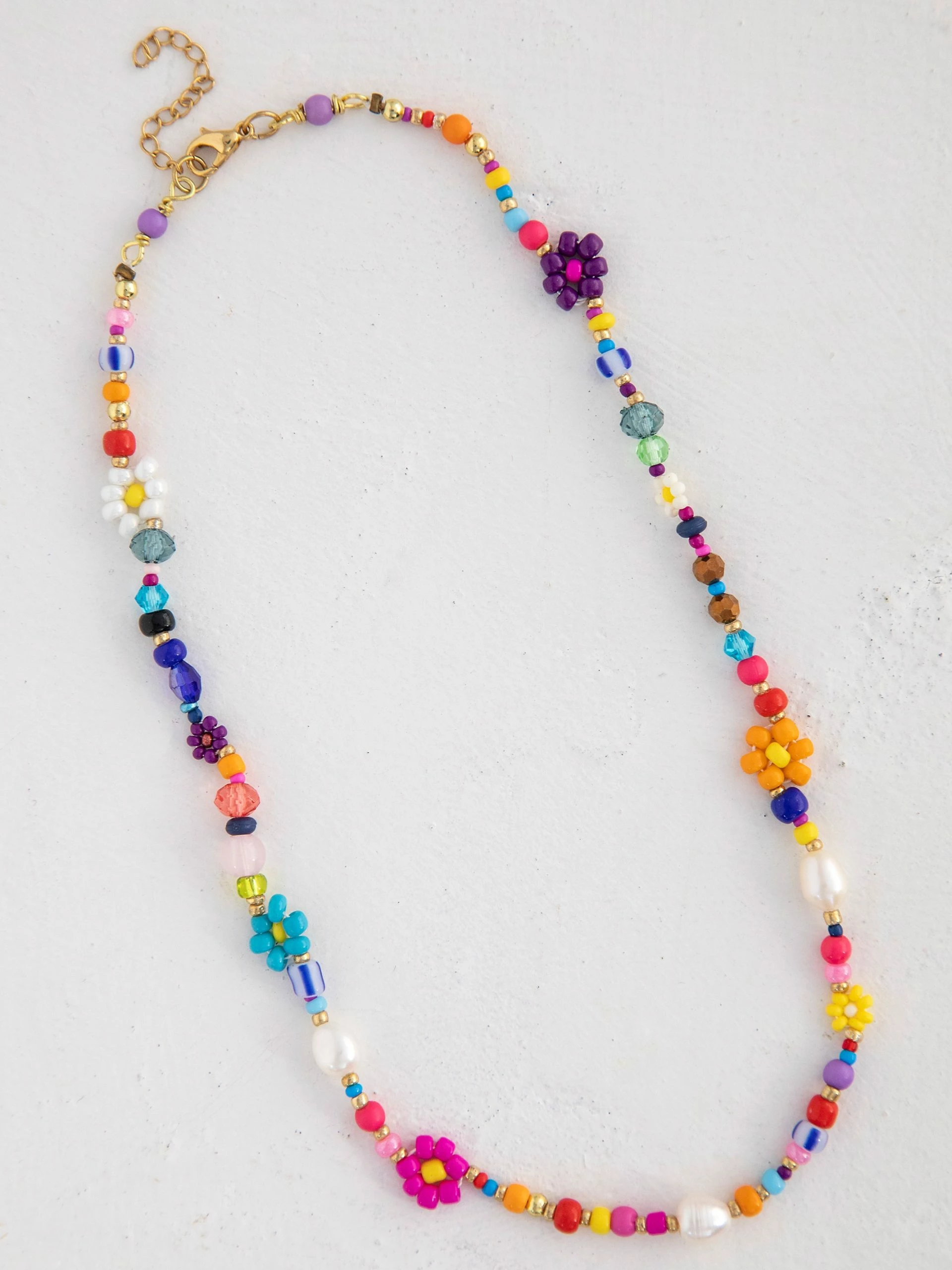 Natural Life Boho Beaded Daisy & Pearl Choker