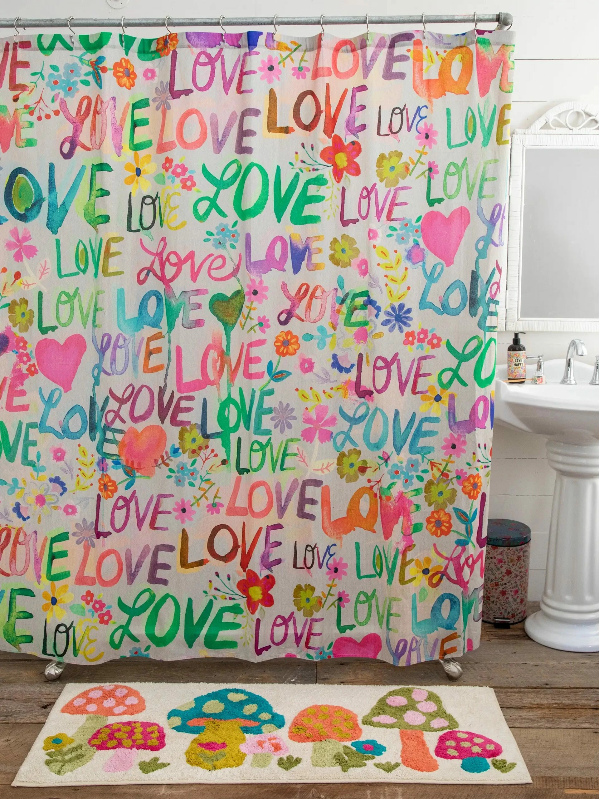 This cute shower curtain takes singing in the shower to a whole new level! This bathing beauty will have your bathroom looking like a little bohemian bungalow! It’s ready to hang and easy to clean in the washer. Pair this Shower Curtain with one of our bathmats for a quick and easy bathroom makeover! All wrapped up in a pretty ribbon for giving – even if it’s just to yourself! Bathe happy!
