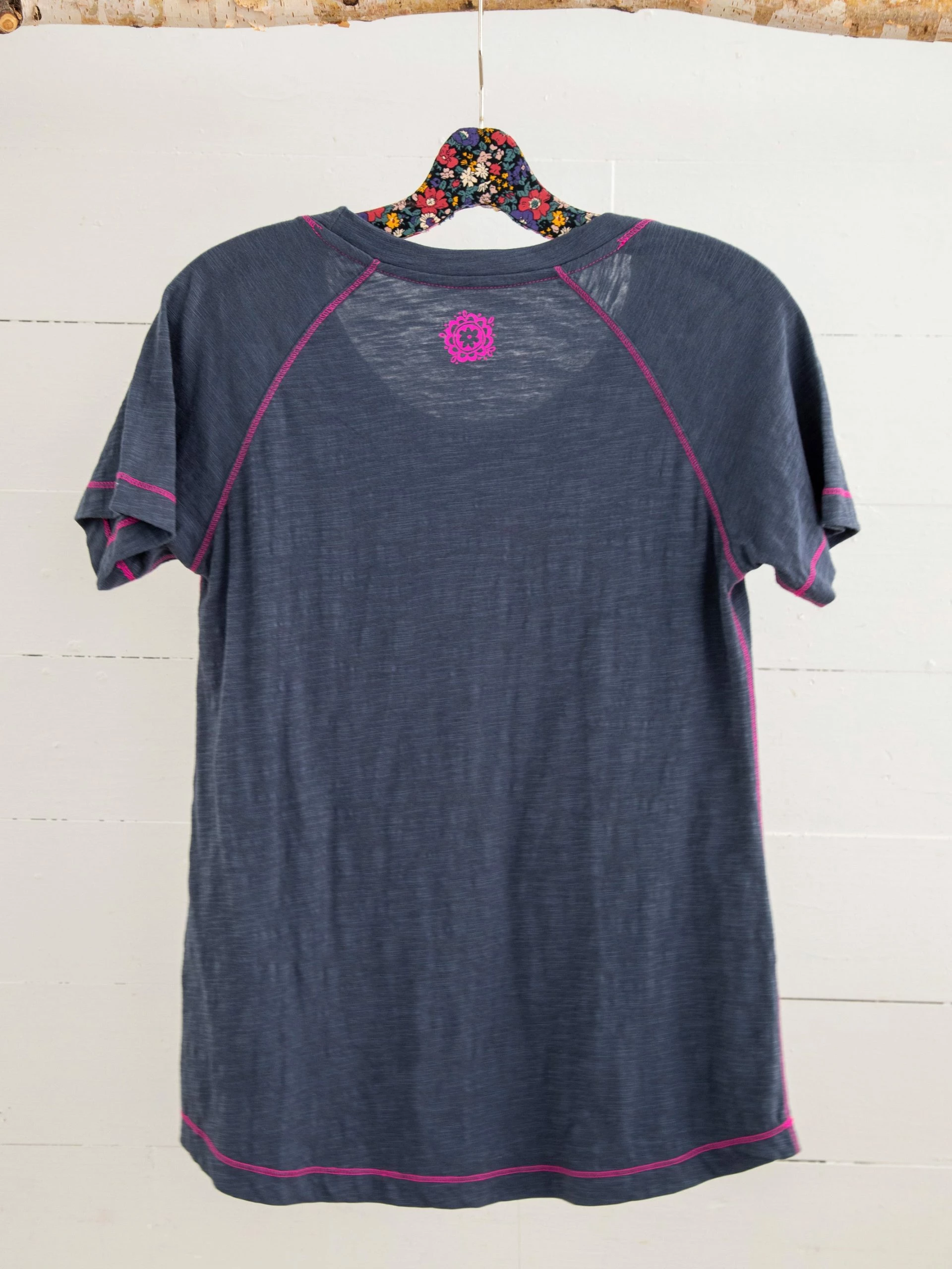 Our relaxed fit Boho Tee has all the cozy comfort of your favorite old t-shirt! However, extra fun features make it more versatile to style. The Boho Tee Shirt has a scoop neck and raglan sleeves that will elevate your t-shirt game. You’ll also appreciate its flattering shape! Knot it in the front, wear it loose, or tuck it in for a different look. Delightful artwork covers the front of this customer favorite. You’ll probably have a hard time picking just one! Which message do you need, or which message do you want others to read? Super soft t-shirts make easy closet choices and keep you comfy all day! Jeans or shorts are a simple go-to but try it with a maxi skirt or palazzo pants. This wardrobe necessity runs true to size while still being relaxed in the middle for comfort. Compare our tee styles here!