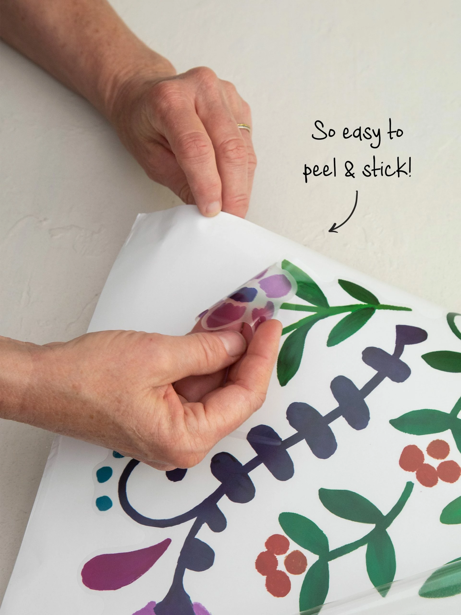 Click for hanging instructions and additional details: Floral Scroll, Small Folk Flowers, Large Folk Flowers, Live Happy