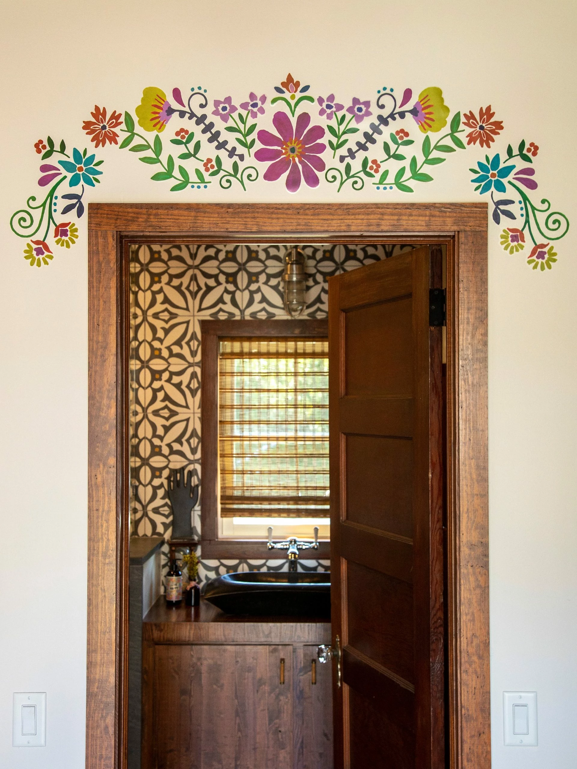 The Bungalow Wall Decal was inspired some incredible hand paintings we saw above doorways during our global travels! They’re so beautiful, we couldn’t wait to make something similar for our homes! This wall decal is bohemian and looks so cute over a doorway, window or mirror! The kit comes with 5 pieces that fit together and is so easy to install and remove! It also comes with instructions. We recommend mapping out and measuring your area before putting the decal on a flat wall, not one with texture!