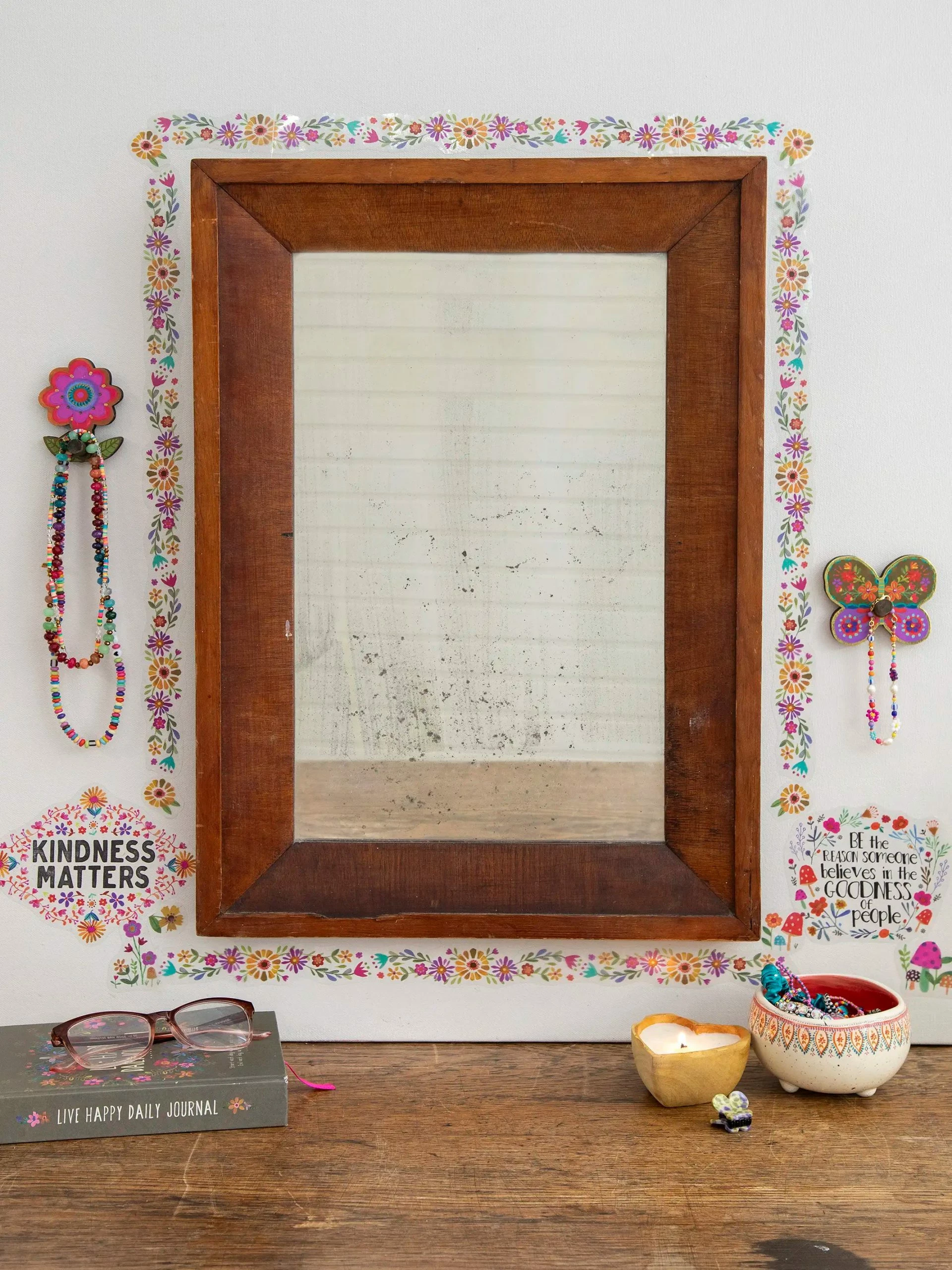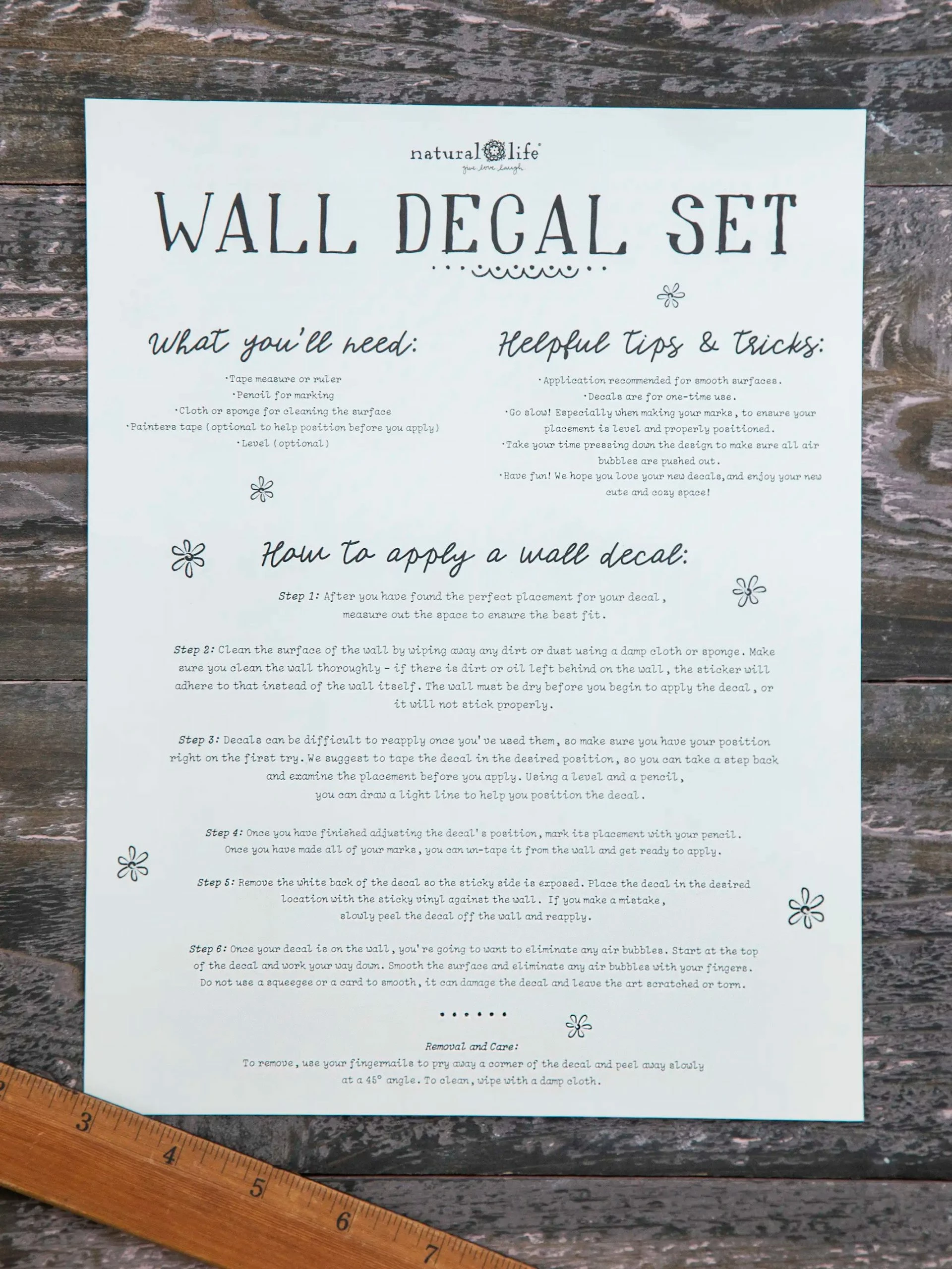 The Bungalow Wall Decal was inspired some incredible hand paintings we saw above doorways during our global travels! They’re so beautiful, we couldn’t wait to make something similar for our homes! This wall decal is bohemian and looks so cute over a doorway, window or mirror! The kit comes with 5 pieces that fit together and is so easy to install and remove! It also comes with instructions. We recommend mapping out and measuring your area before putting the decal on a flat wall, not one with texture!