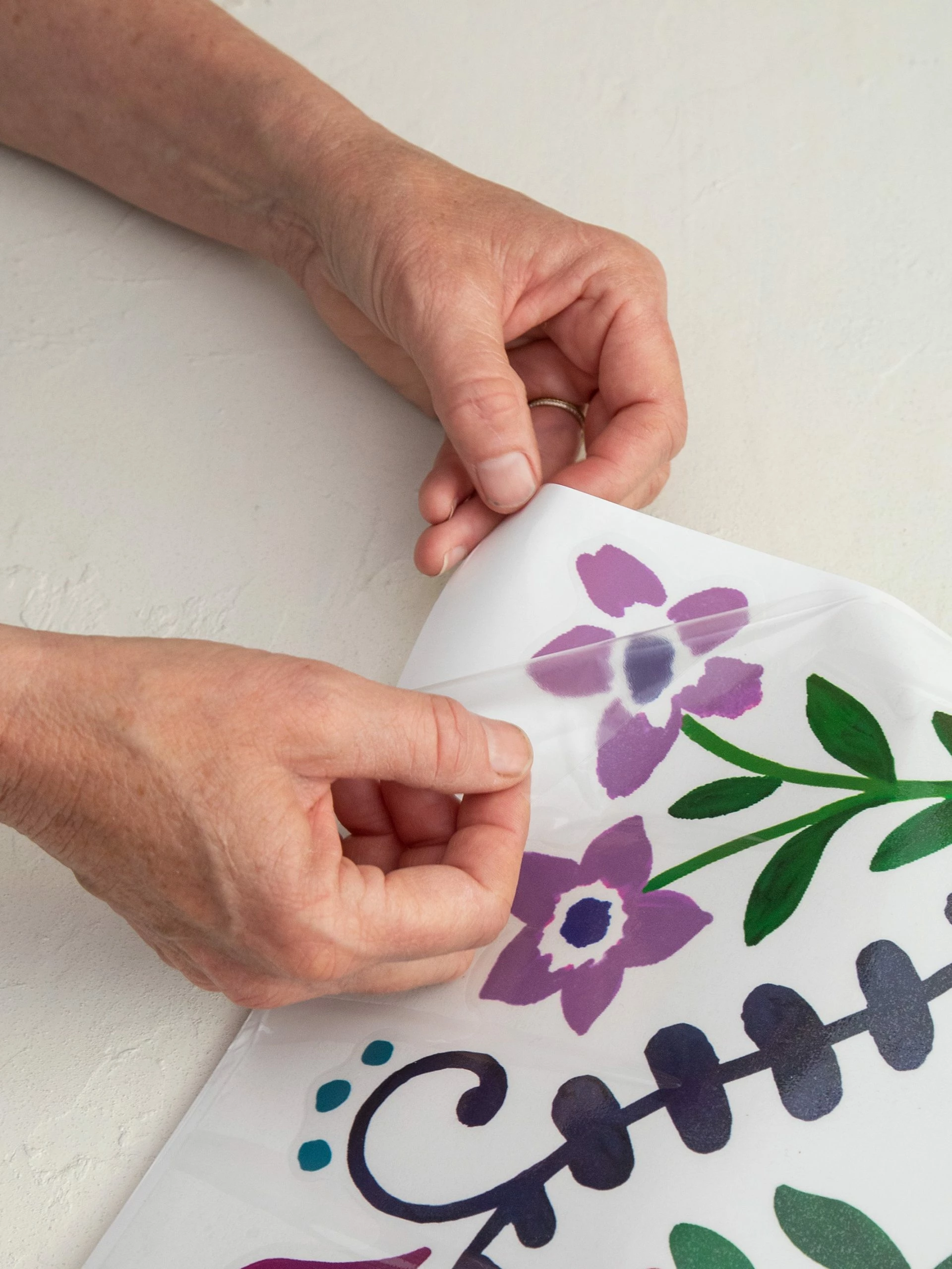 Click for hanging instructions and additional details: Floral Scroll, Small Folk Flowers, Large Folk Flowers, Live Happy