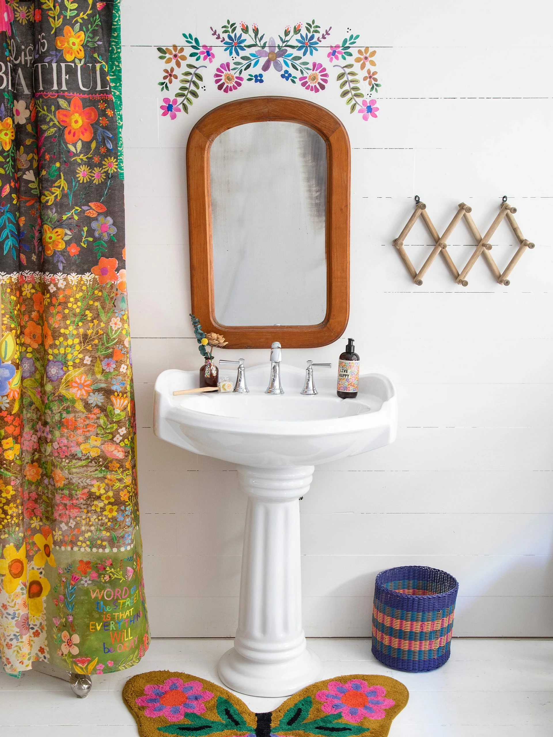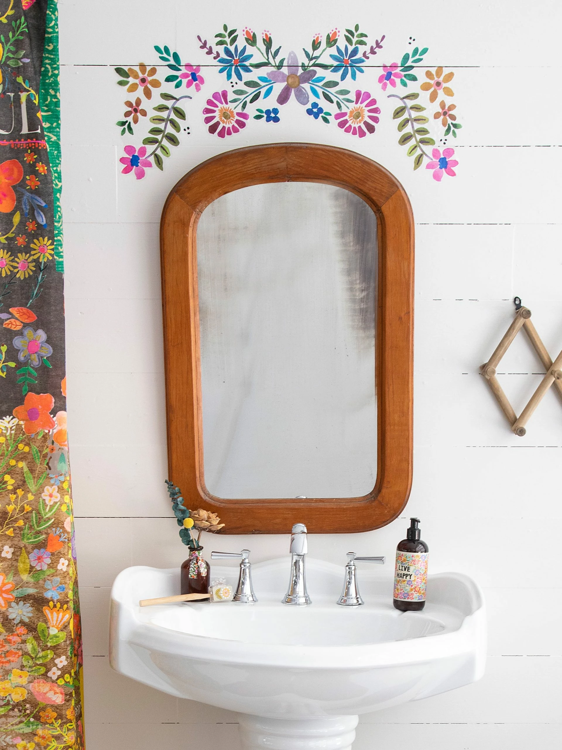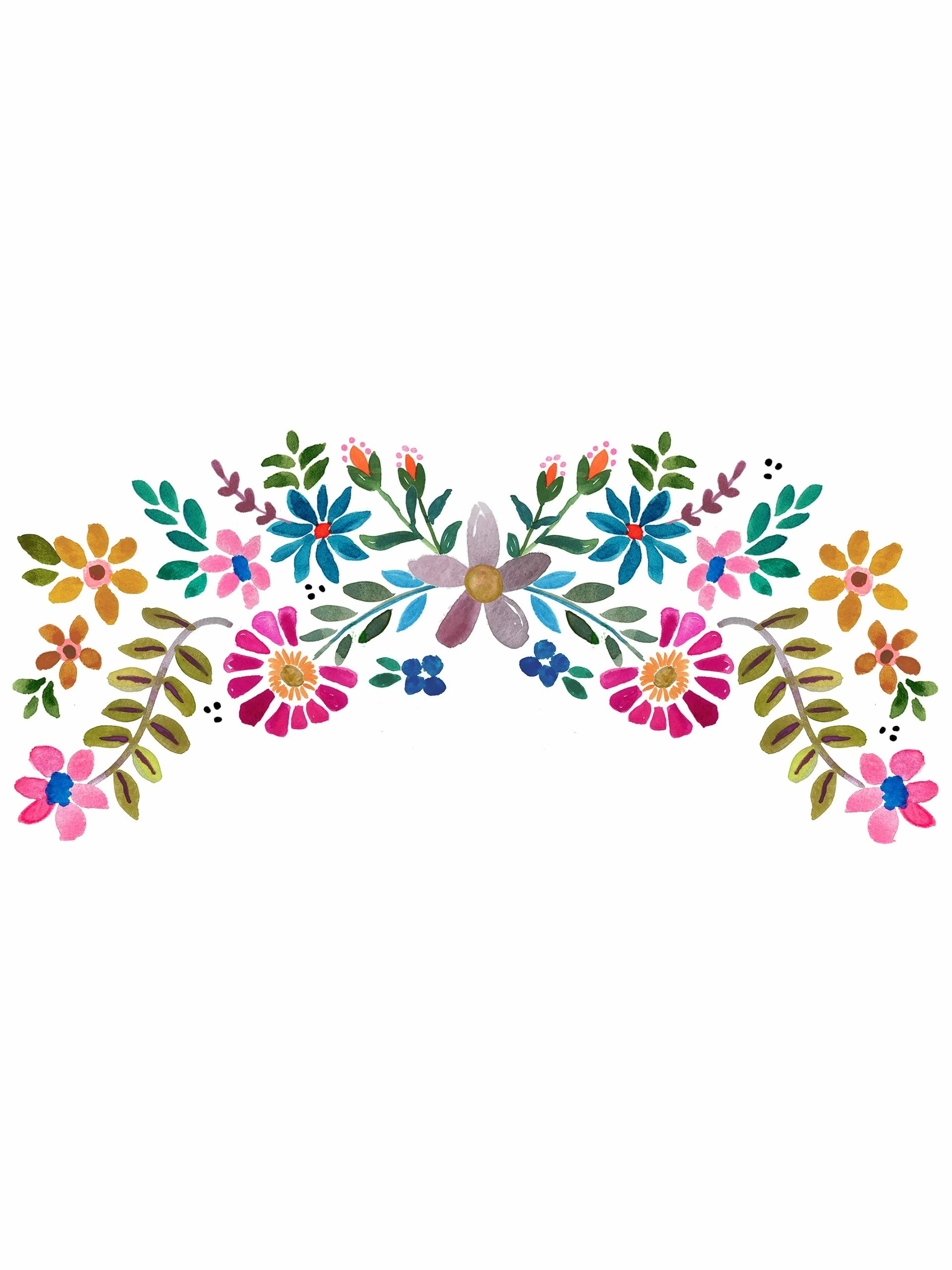 The Bungalow Wall Decal was inspired some incredible hand paintings we saw above doorways during our global travels! They’re so beautiful, we couldn’t wait to make something similar for our homes! This wall decal is bohemian and looks so cute over a doorway, window or mirror! The kit comes with 5 pieces that fit together and is so easy to install and remove! It also comes with instructions. We recommend mapping out and measuring your area before putting the decal on a flat wall, not one with texture!
