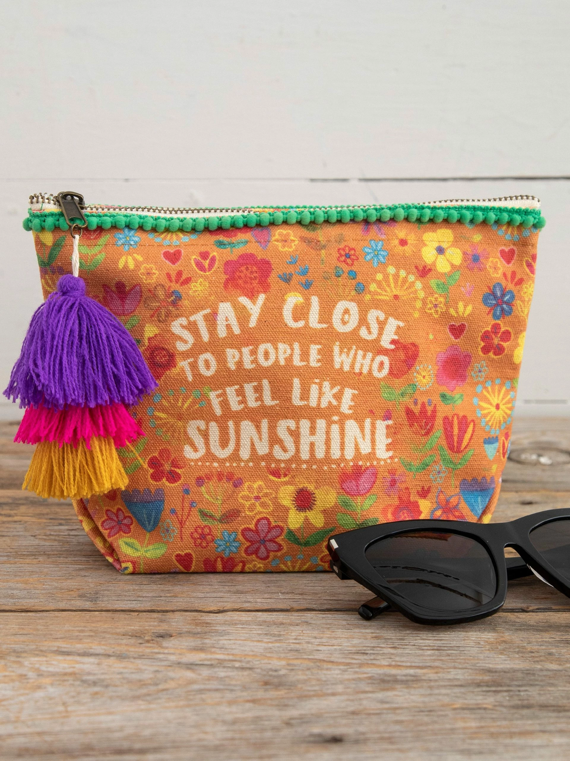 Our bright and cheery Canvas Pouch has limitless possibilities! The boho printed canvas with contrasting pom pom trim will make anyone a bit more cheerful! Pull on the stacked zipper tassel to open it up! We love things that are fun to use and carry. The message will inspire you each time you use it! This large size has a gusset for packing it full, so stuff it with your cosmetics for traveling! It also makes a perfect pencil case and is just the right size for tucking into a backpack or tote bag. Use it at home to keep your office supplies handy. We believe it’s the perfect accessory accompaniment to our Everyday Canvas Tote or any bag you have at home! Are you already thinking about collecting them all?