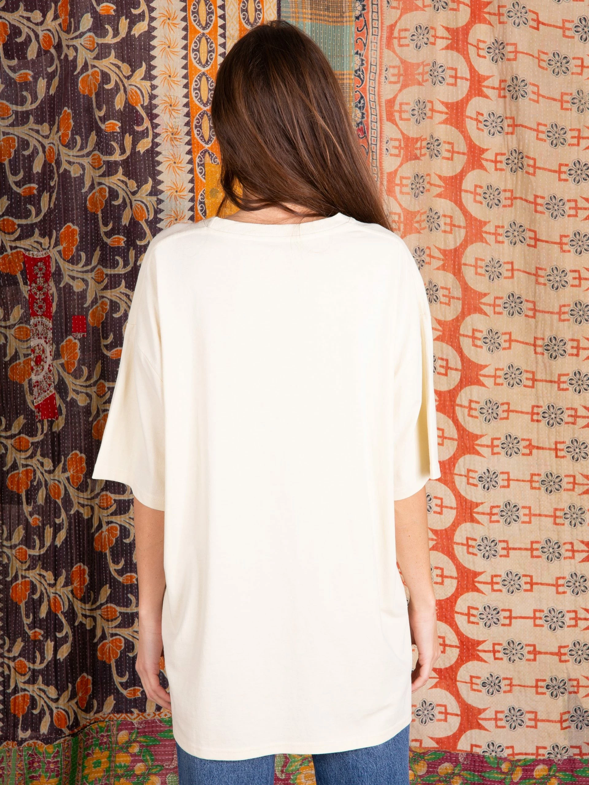 Choose which way you want to style your Chandler Tee Dress; there are so many options! Wear it like an oversized tee with bike shorts or leggings. It also looks great with jeans or shorts. We love the classic crew neck, and you will too! Add a long sleeve tee underneath to make it a fall/winter go-to as well – super cute! It’s meant to be big & slouchy, but you can always size down for a slimmer fit. Compare our tee styles here!