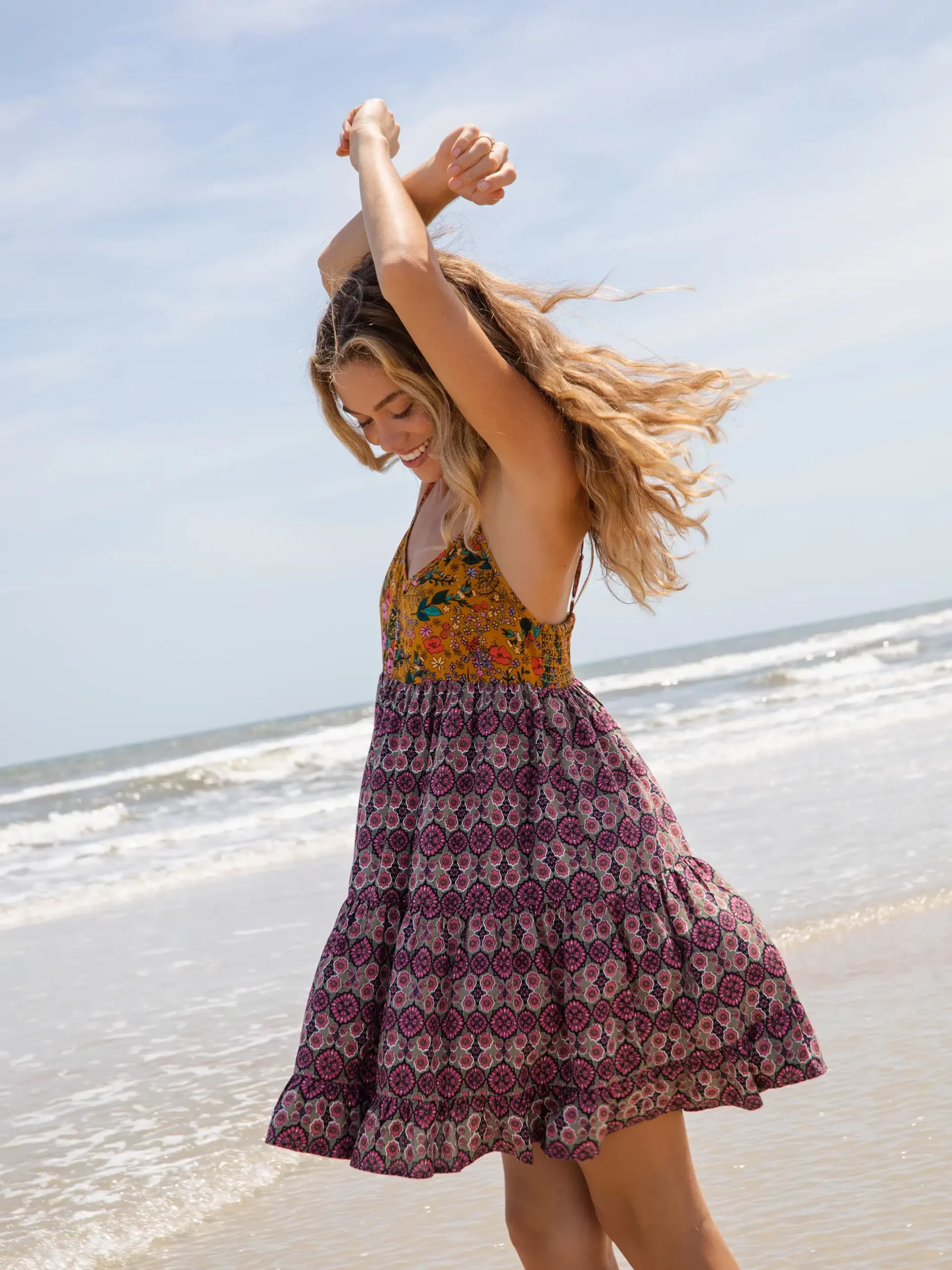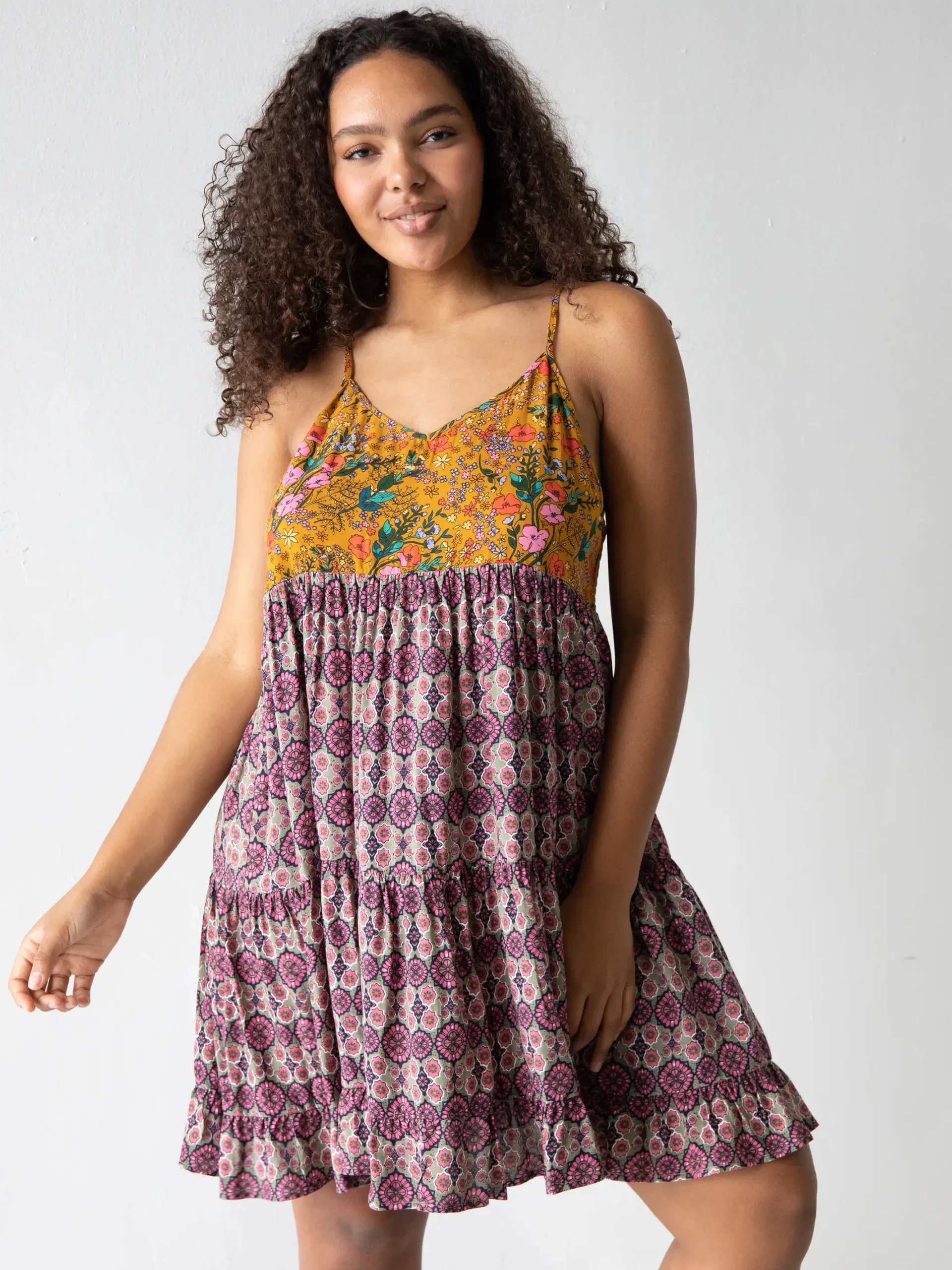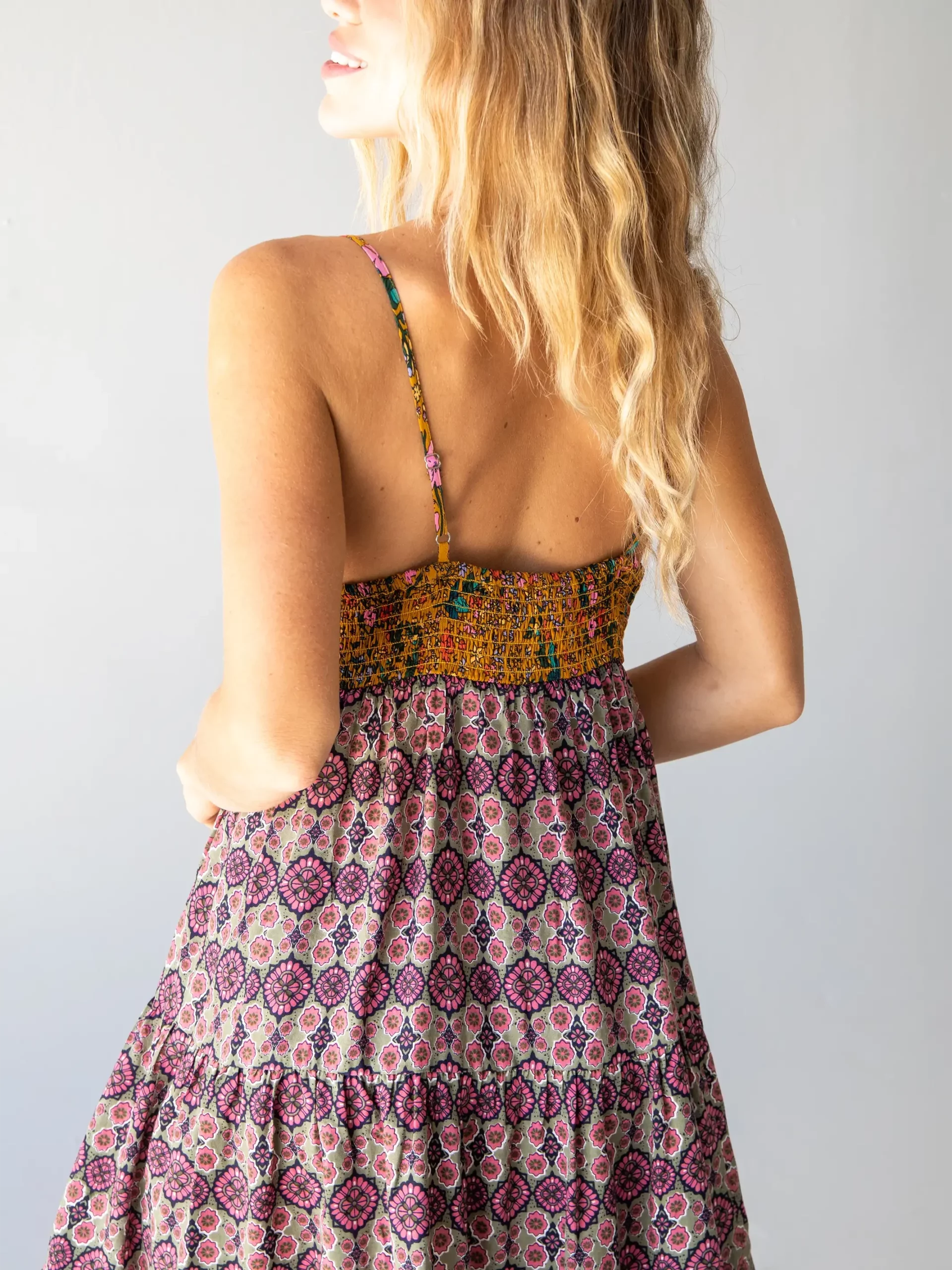Natural Life Cleo Tiered Dress – Mixed Medallion Print