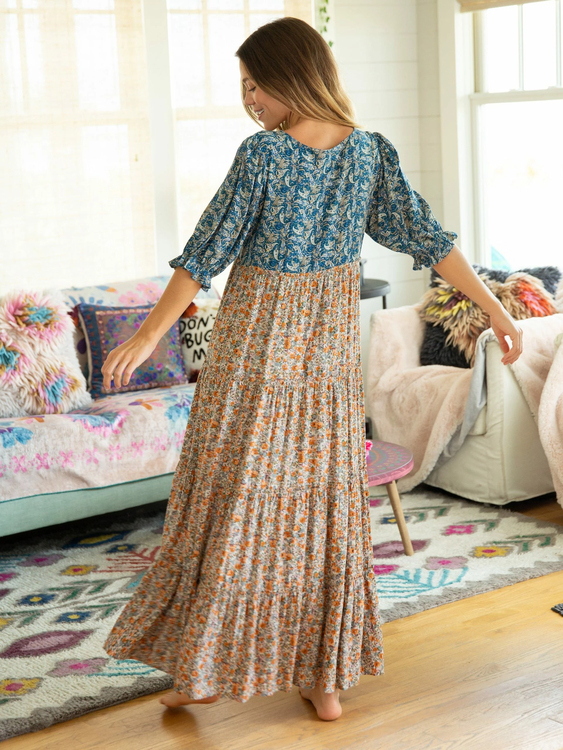 Natural Life Collette Tiered Maxi Dress – Blue Orange Mix Print