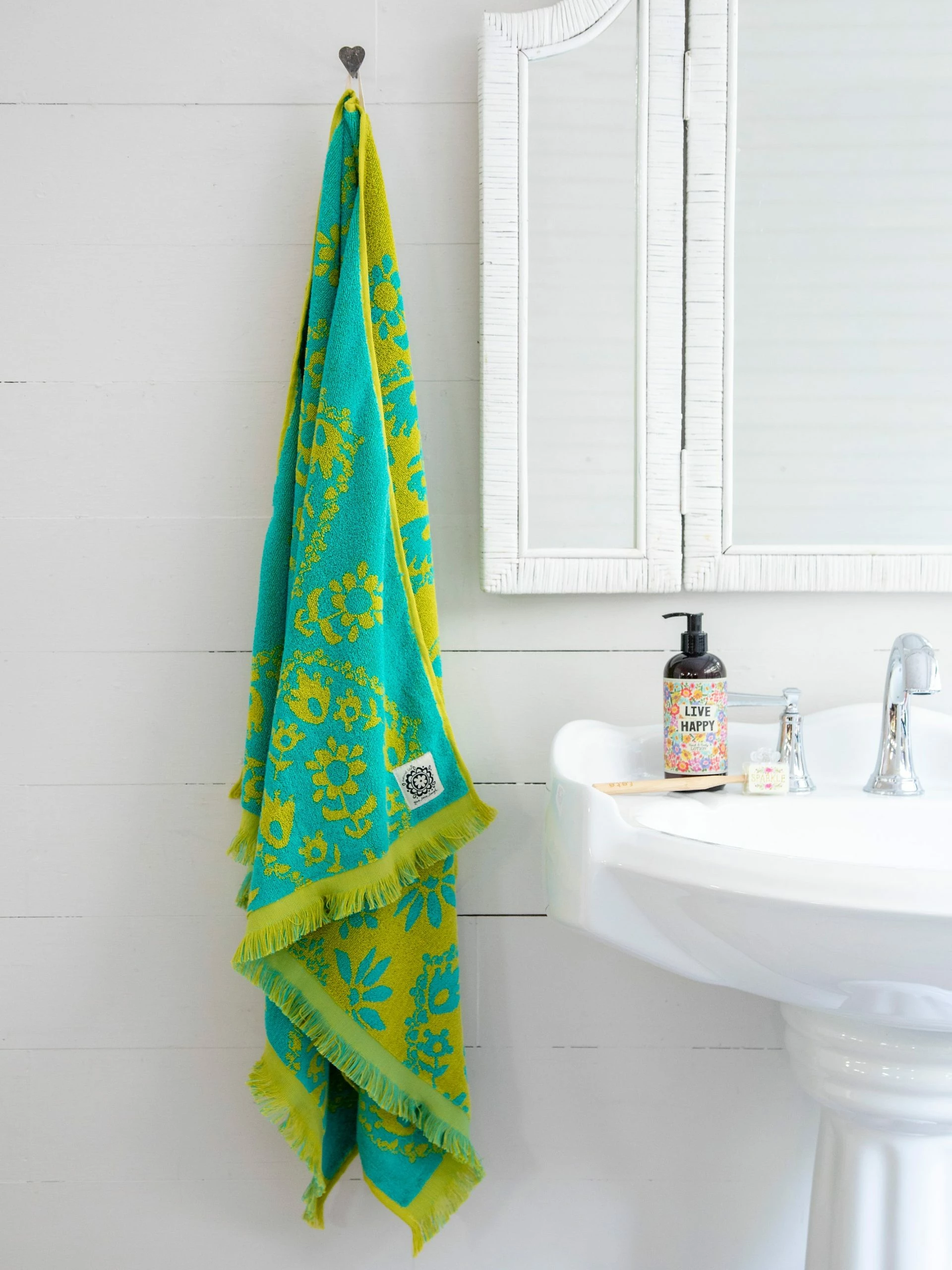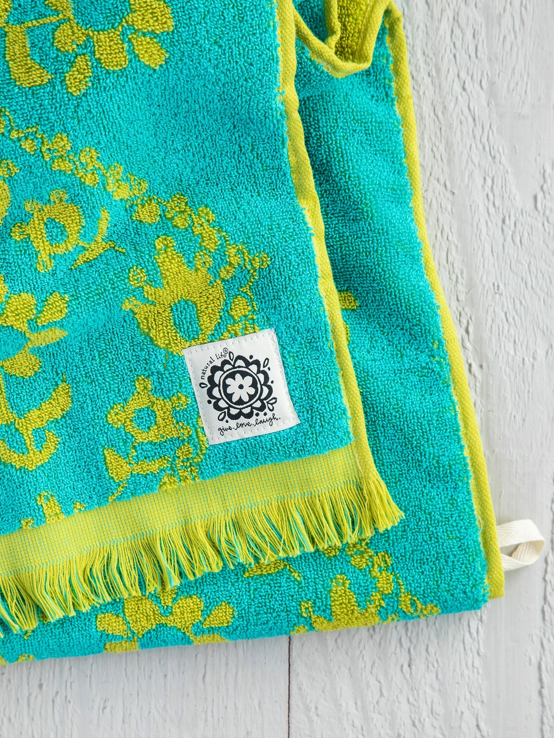 Natural Life Cotton Bungalow Beach Towel – Turquoise Mandala Border