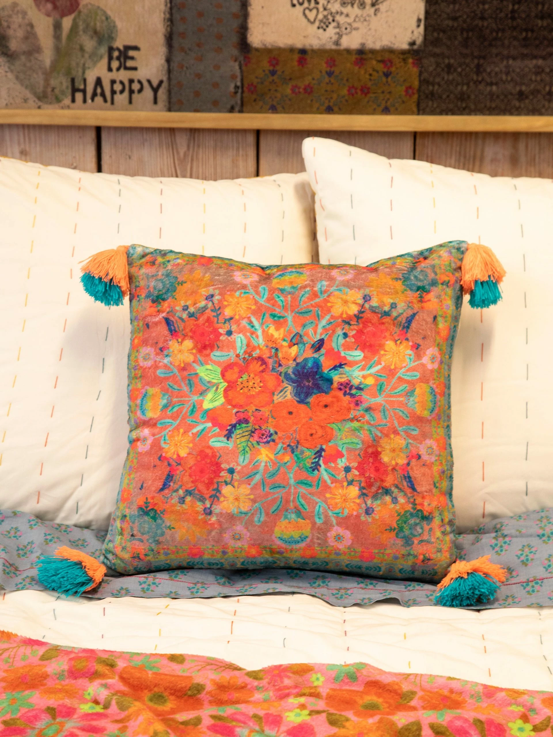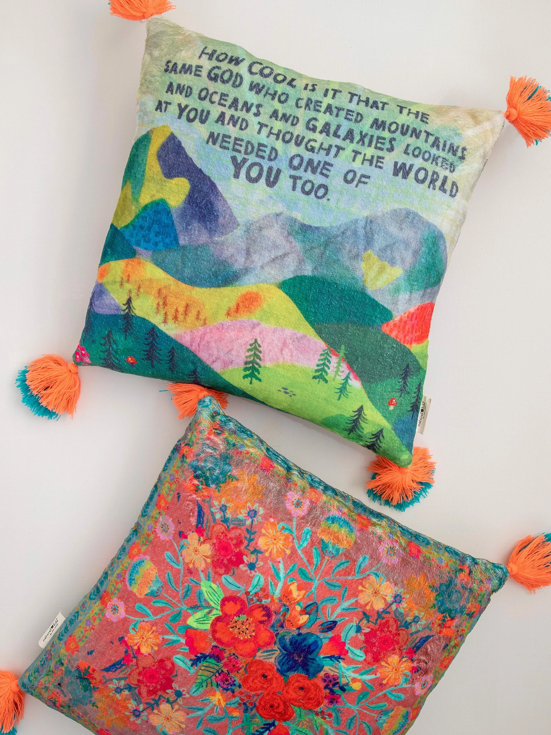 Pillows add personality and make life a bit cozier! Cozy Throw Pillows will brighten and beautify your bedroom! To make them worthy of their name, we designed them from our Cozy Blanket material, so they’re luxuriously soft and snuggly! Stacked coordinating tassels on each corner add extra color and fun! The other bonus is that they’re reversible! Are you in the mood for an artsy design or an inspiring message? Make life cozy!