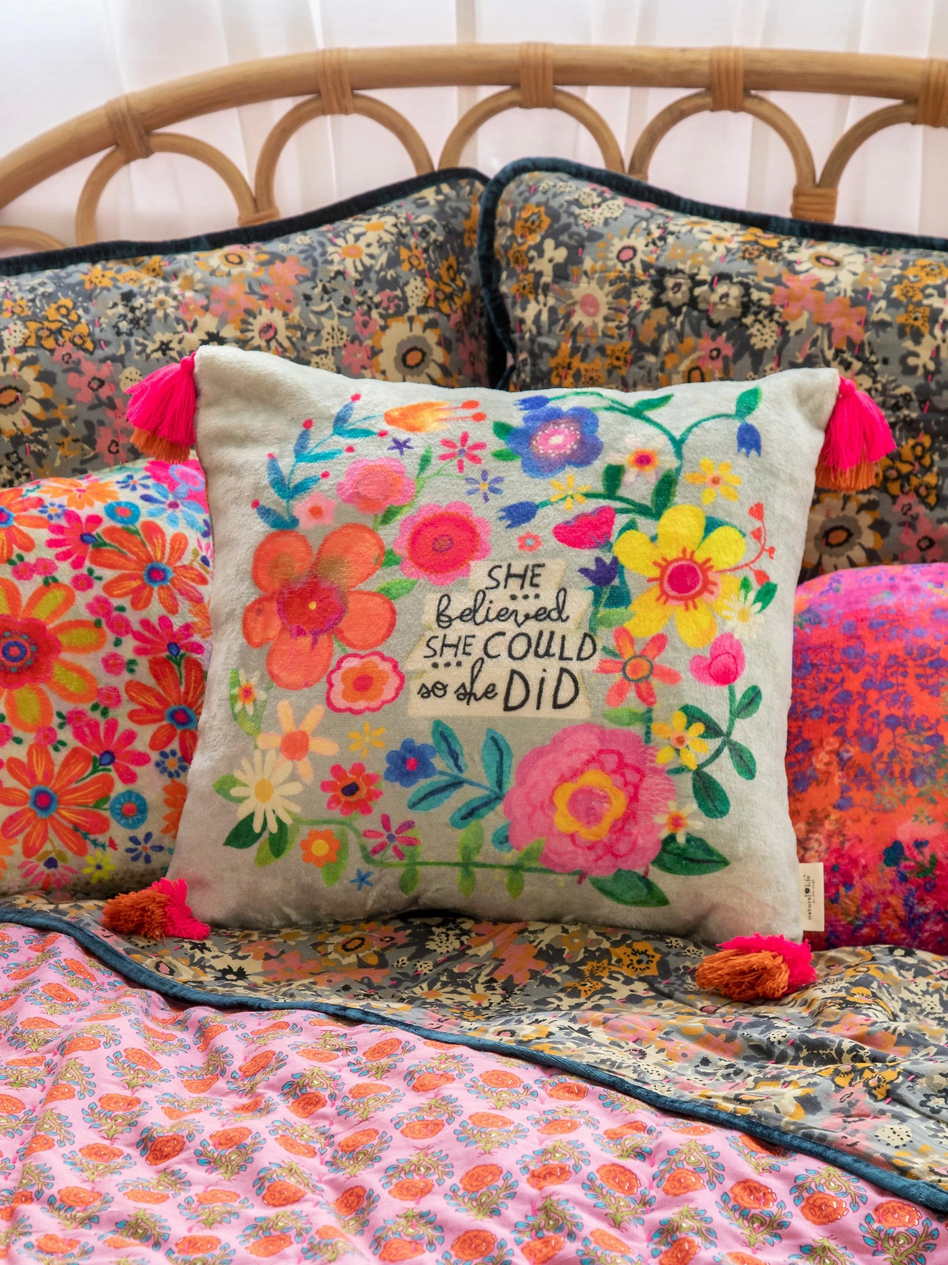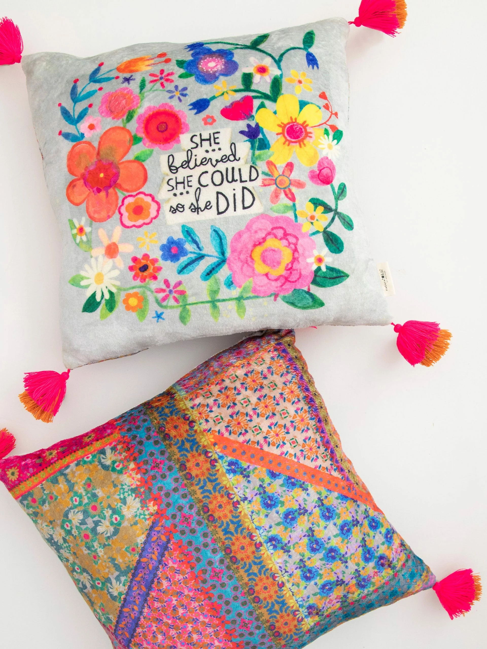 Natural Life Cozy Throw Pillow – She Believed Kindness