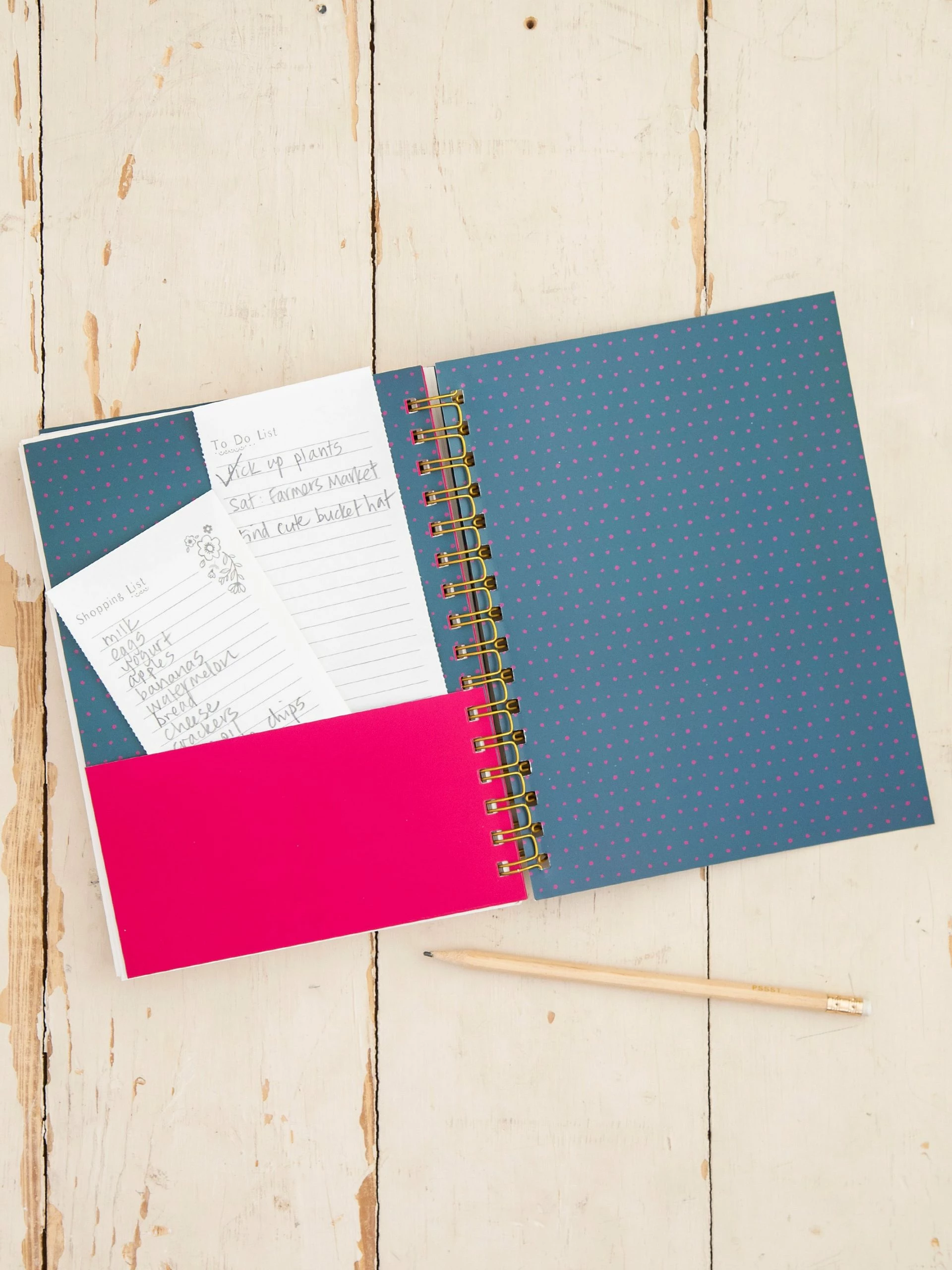 If you’re a list maker or planner person, this is a must for you! Use a page per day or a page per week; it never expires because it’s dateless. No more guilt over empty pages! It’s a great way to keep your thoughts and life organized. With 160 pages, there’s plenty of room to get ideas, chores, and plans out of your head. Write to-do lists, meal plans, projects, gift lists, errands, book lists, travel plans, etc. In the back, we’ve included perforated lists for groceries, errands, or honey-do lists. Why not use it as a journal? Record what you’re grateful for each day and put your thoughts on paper. Studies show that journaling makes you happier, and we’re all about that! The double-sided pocket in the back can hold Natural Life stickers, receipts, or special mementos. Not only is it useful in many ways, but the beautiful artwork will inspire you and make you want to break out your colored pencils.