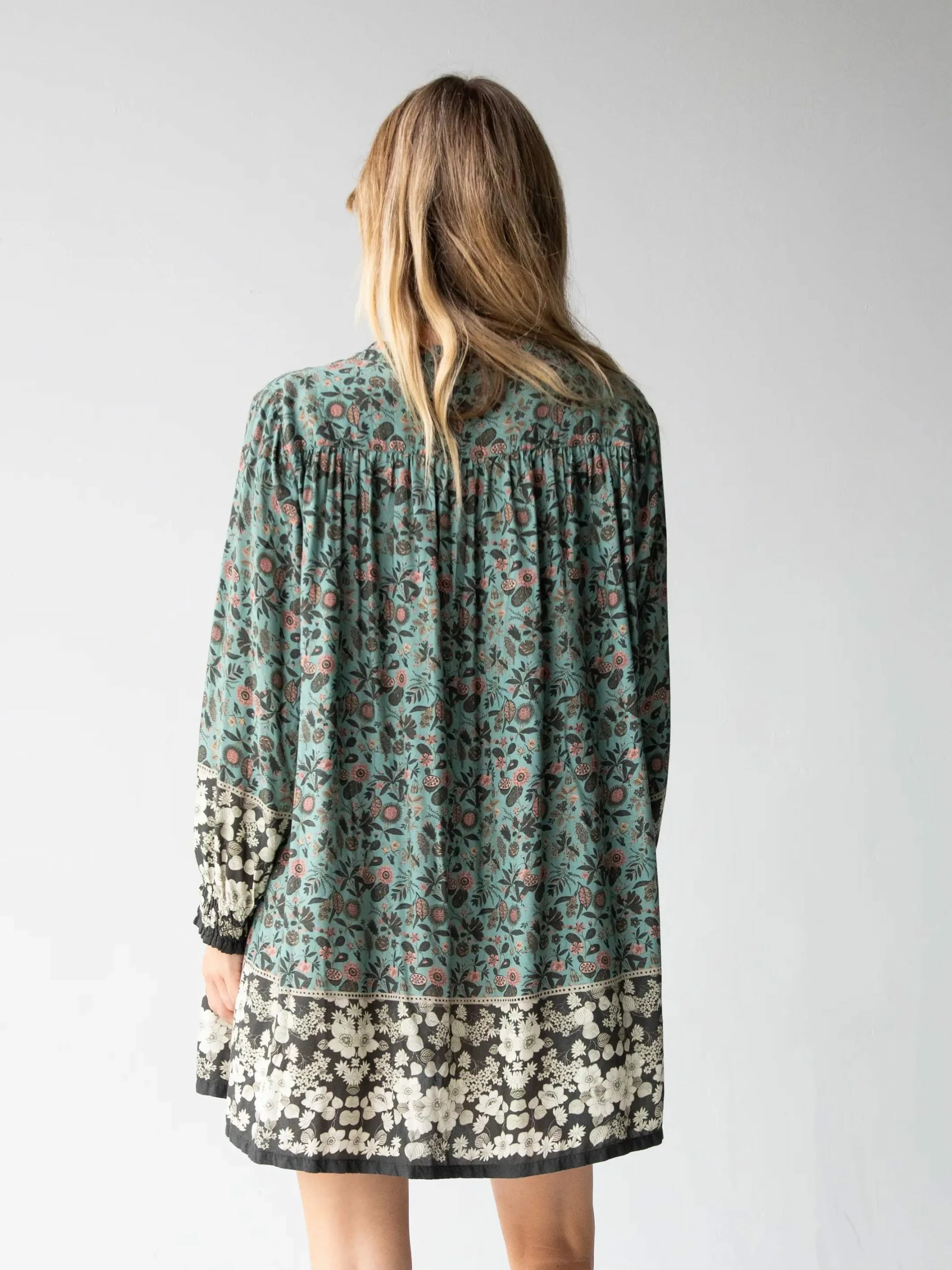Natural Life Dara V-Neck Mini Dress – Sage Black Floral Border