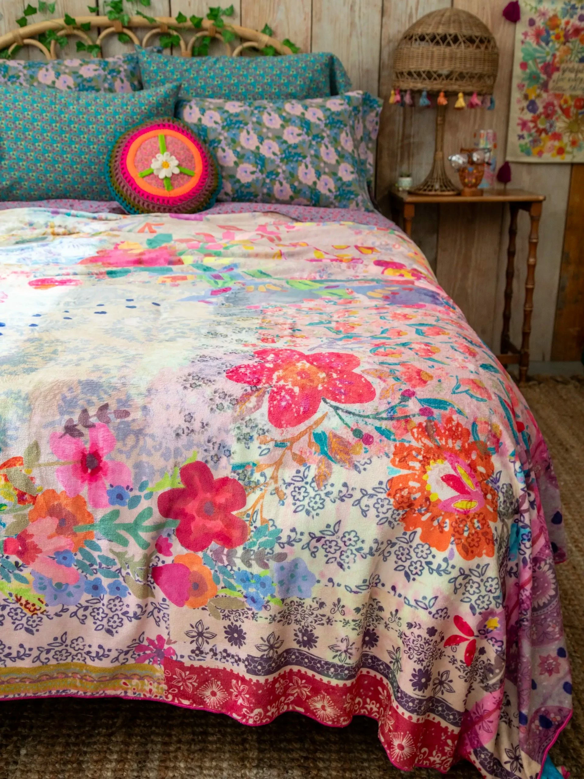 Get ready to cozy up in style with our Double Sided Cozy Coverlet! Imagine wrapping yourself in its soft embrace and you’ll feel like you’re in your own little world. Not only is it super soft, but this Cozy Coverlet is also double-sided! On each side, you’ll find gorgeous floral designs and a delightful array of colors, giving you twice the beauty and versatility! Each side features contrasting colors and different designs so it’s truly like having two stunning coverlets in one! You can switch things up depending on your mood or season. Whether you want to create a serene, nature-inspired ambiance or add a pop of vibrant energy to your room, our Cozy Coverlet has got you covered! Its exquisite floral patterns and rich colors melt into each other, creating the most elegant yet whimsical look. This is truly a must-have piece for your bedroom that is impossible to get sick of looking at!