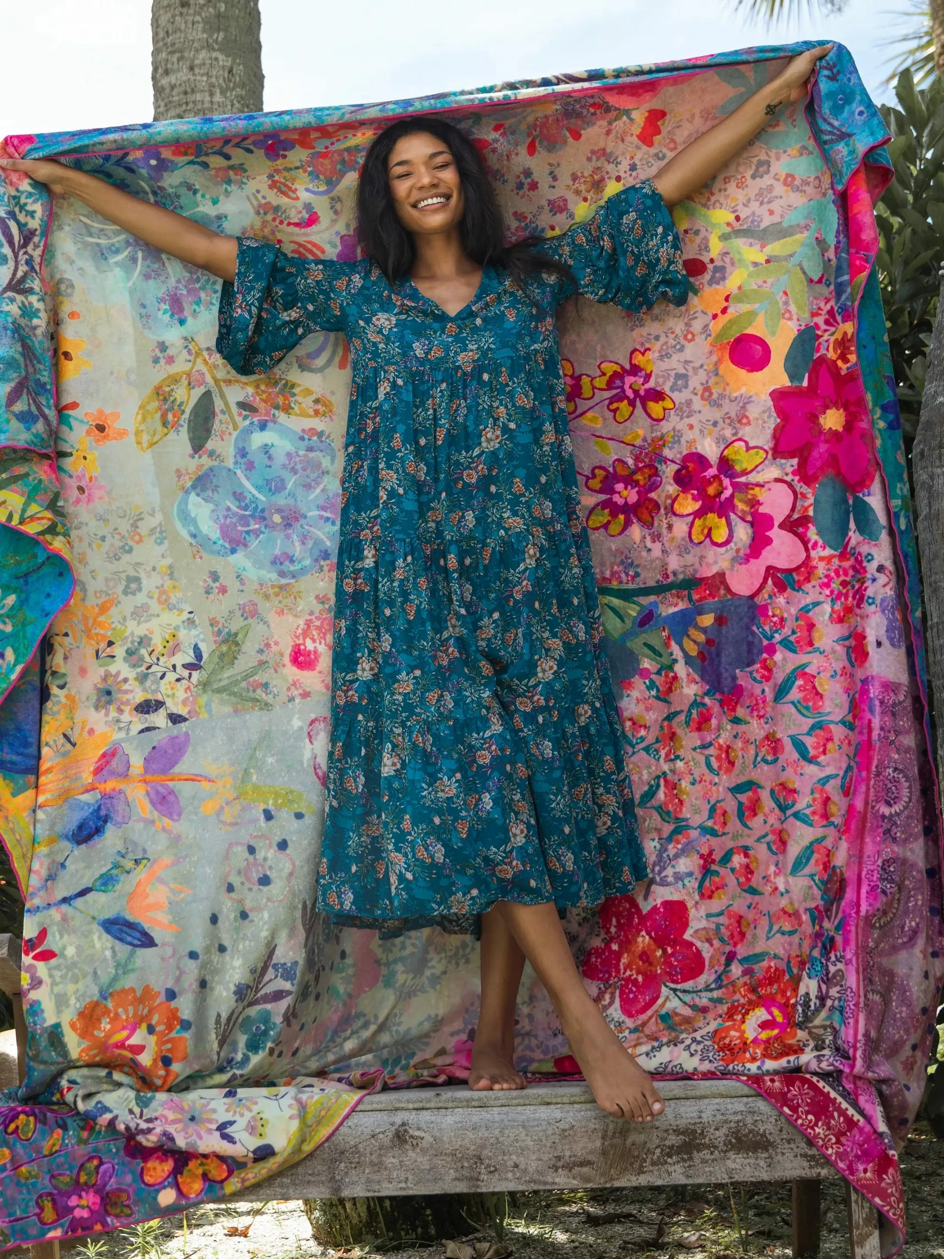 Natural Life Double-Sided Cozy Coverlet – Watercolor Floral