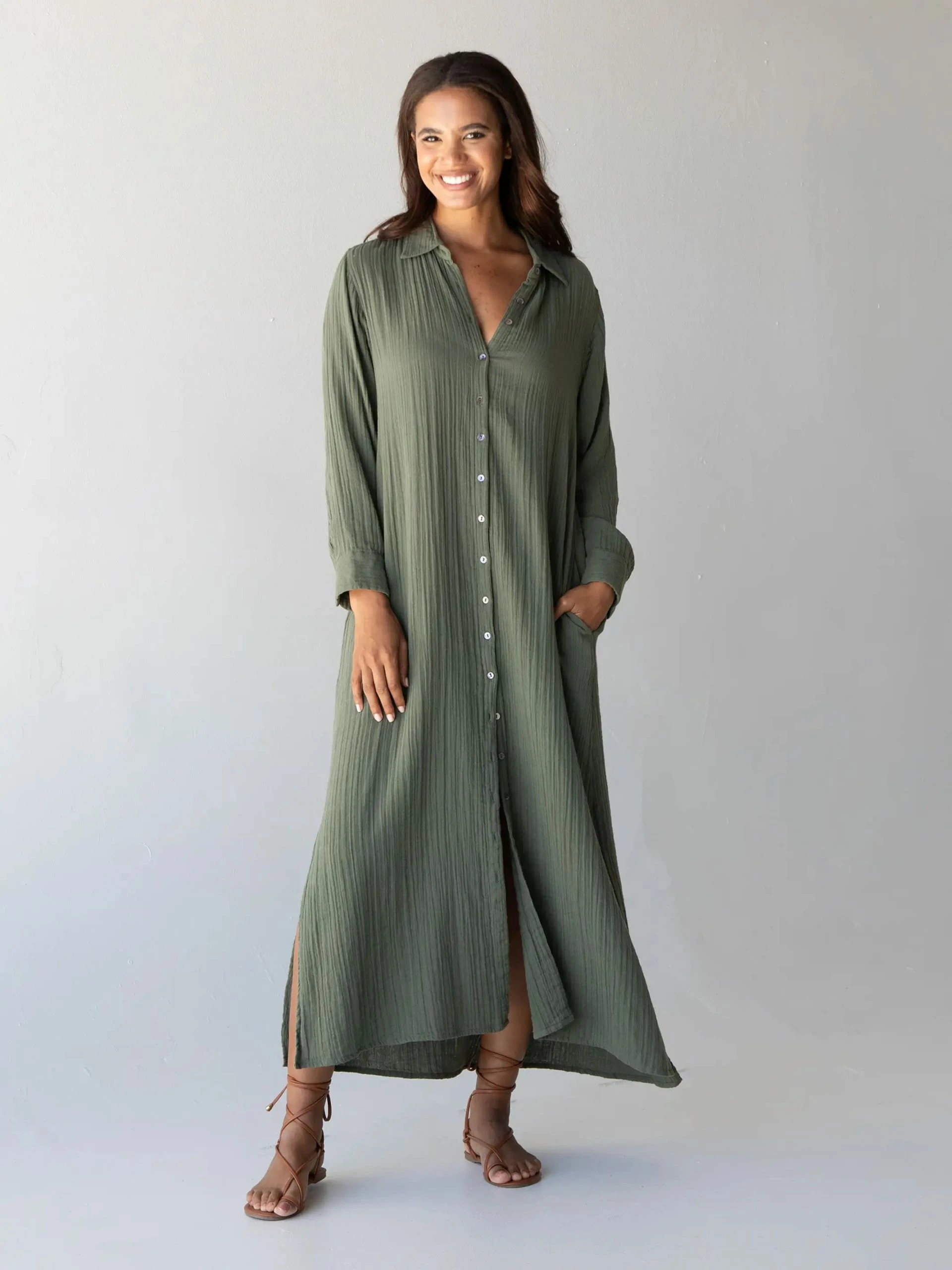 Be the first to review “Natural Life Drew Gauze Shirt Dress – Olive” Cancel reply