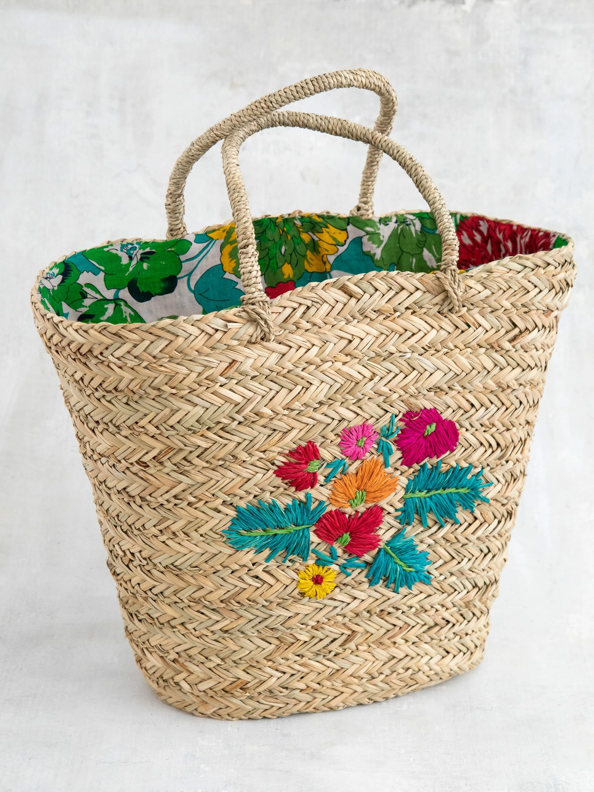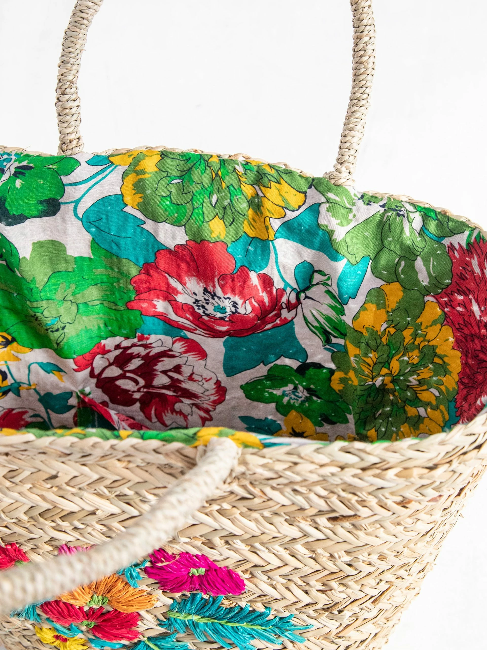 Stow all your pool and beachside essentials in this cute Straw Tote! It features a beautiful embroidered design on the front and a printed floral lining. It’s so lightweight and durable, making it perfect for picnics and outdoor adventures!