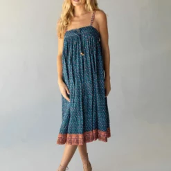 Laid-back comfort and cute patterns flow in this fun and swingy dress! If most dresses are too long for you, options are needed! So… Emma is a bit shorter than a midi dress! The creative printed trim on the wide adjustable straps matches the boho border at the full hem. Don’t you love the ties with wooden beads?! Slip it on for being cozy at home or shop ‘till you drop! SO cute and comfy!