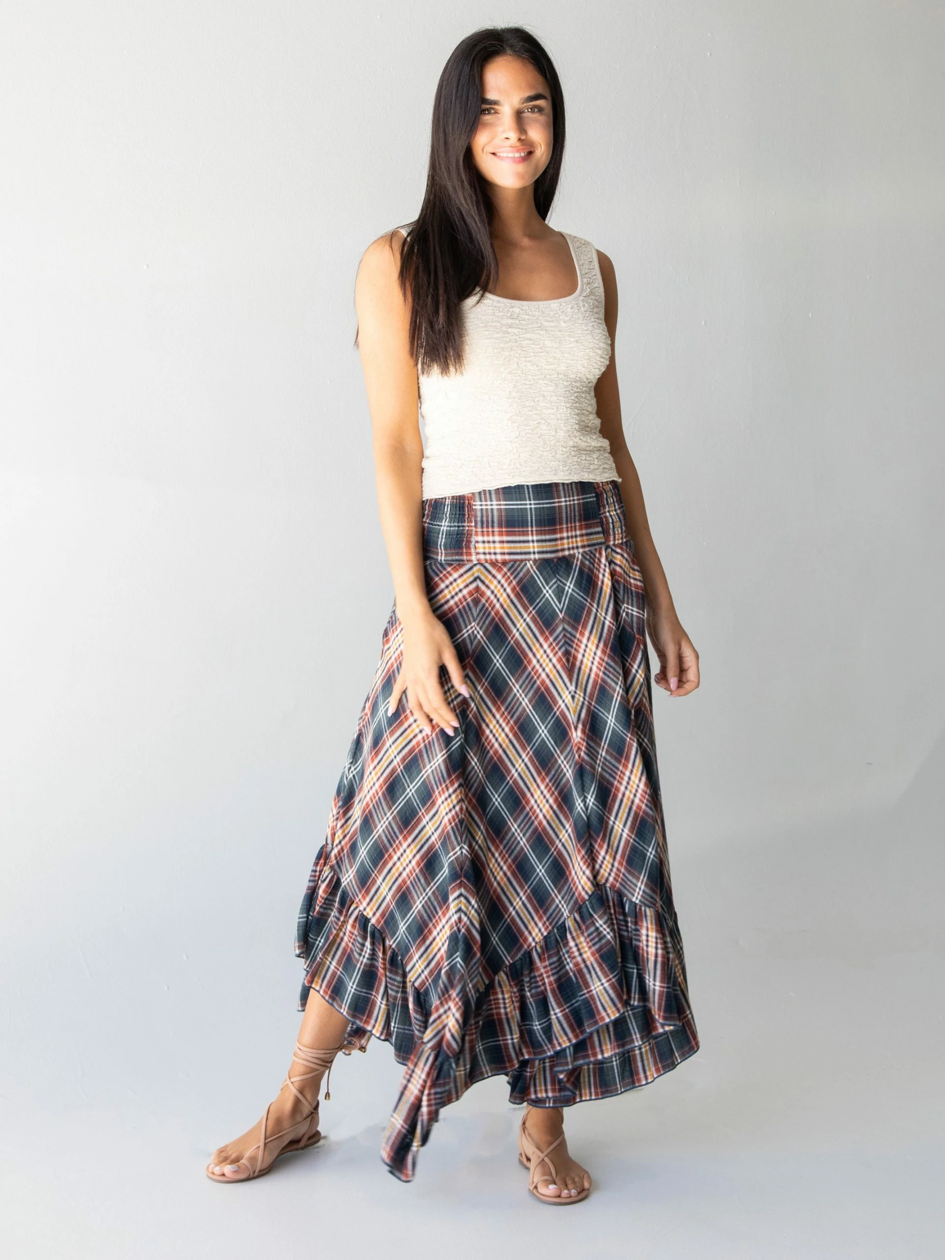 Natural Life Feelin’ Alive Convertible Midi Skirt – Navy Plaid