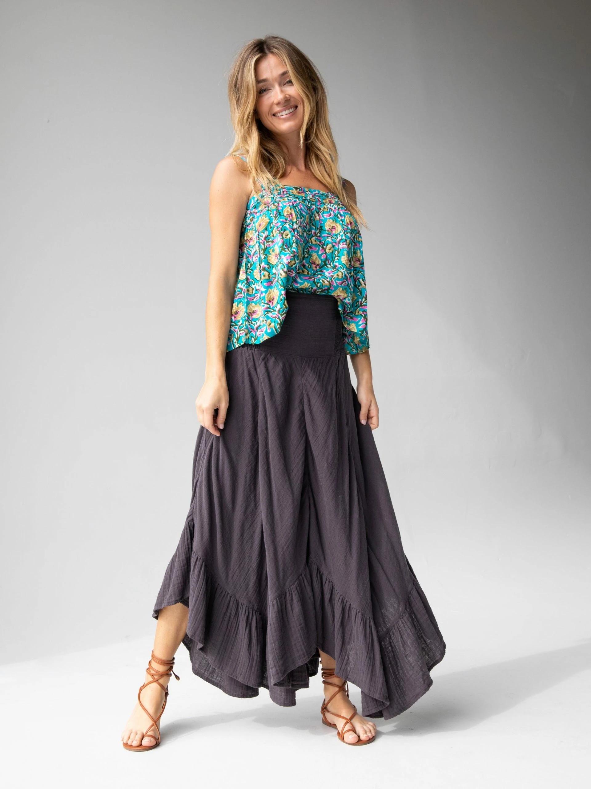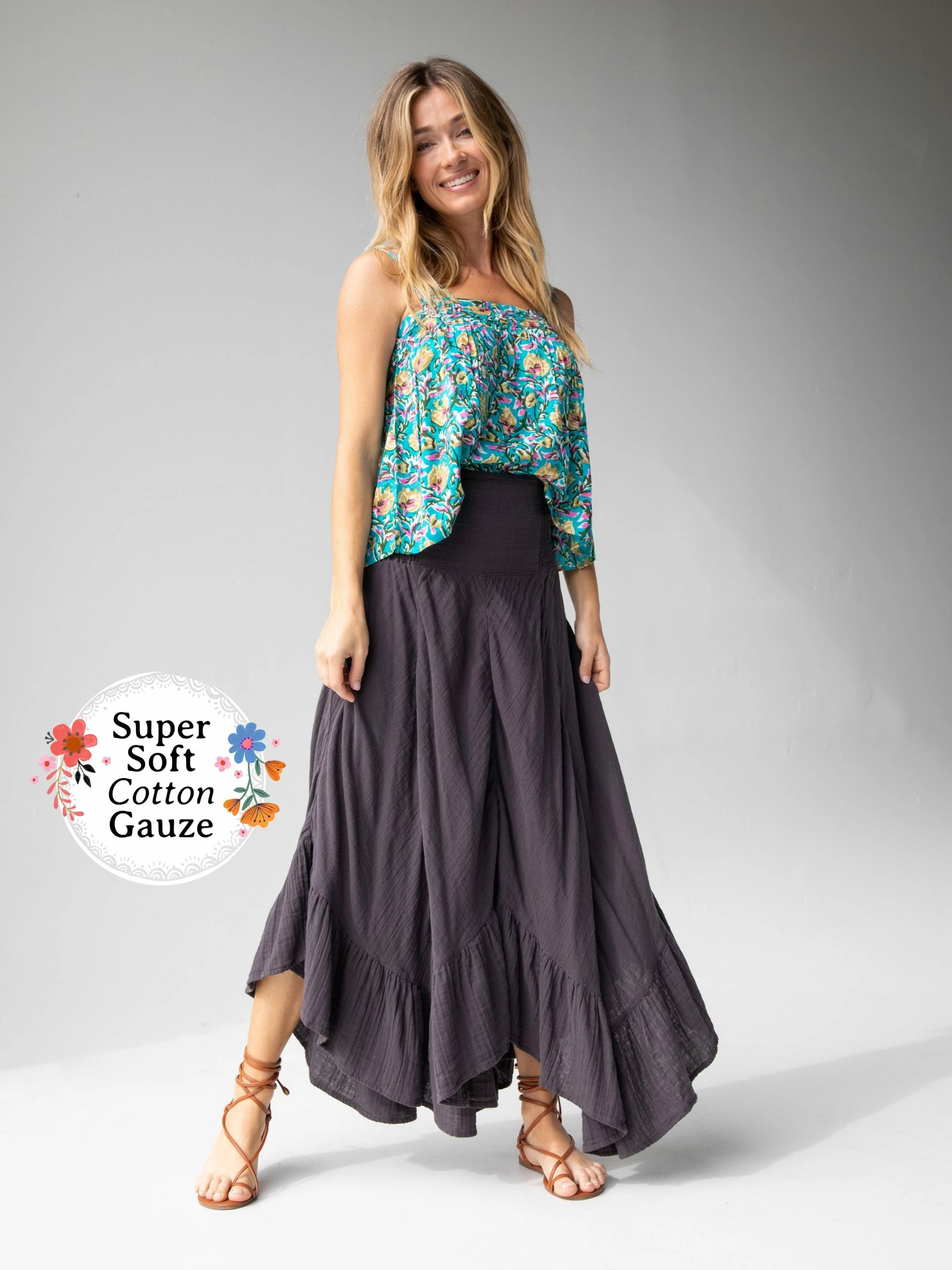 Natural Life Feelin’ Alive Gauze Convertible Midi Skirt – Charcoal