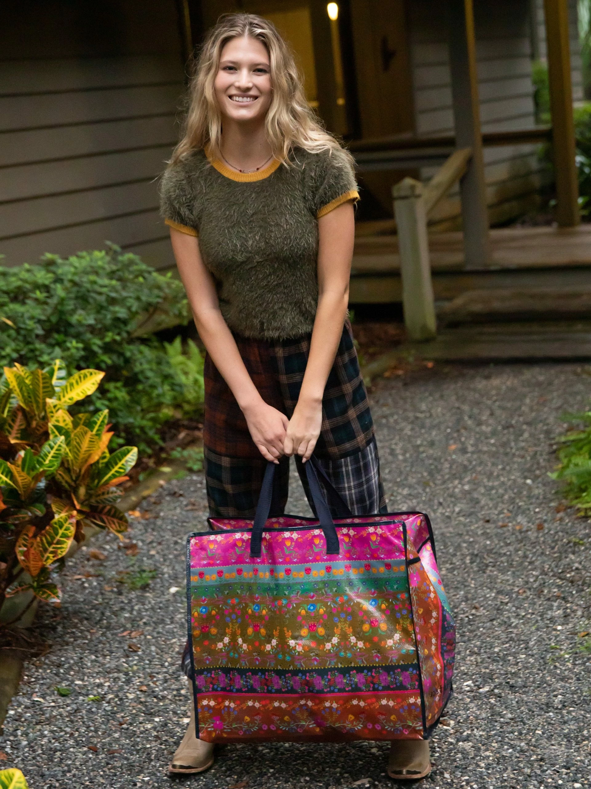If you haven’t used our Jumbo Zip Tote yet, you’re in for a treat! Our Jumbo Zip Tote is perfect for road trips, dorm moves, shopping sprees, park days, beach excursions, gift wrapping, book toting, and more! Use them in a kid’s room as a home for stuffed animals. Give your linen closet a long overdue makeover by stashing extra bedding in our Jumbo Zip Tote—adorable and organized! We like using them for off-season clothing storage too! Our totes are sure to bring cheer wherever they’re used. Since they easily wipe clean and fold flat for storage, keep a supply for any need that might arise.