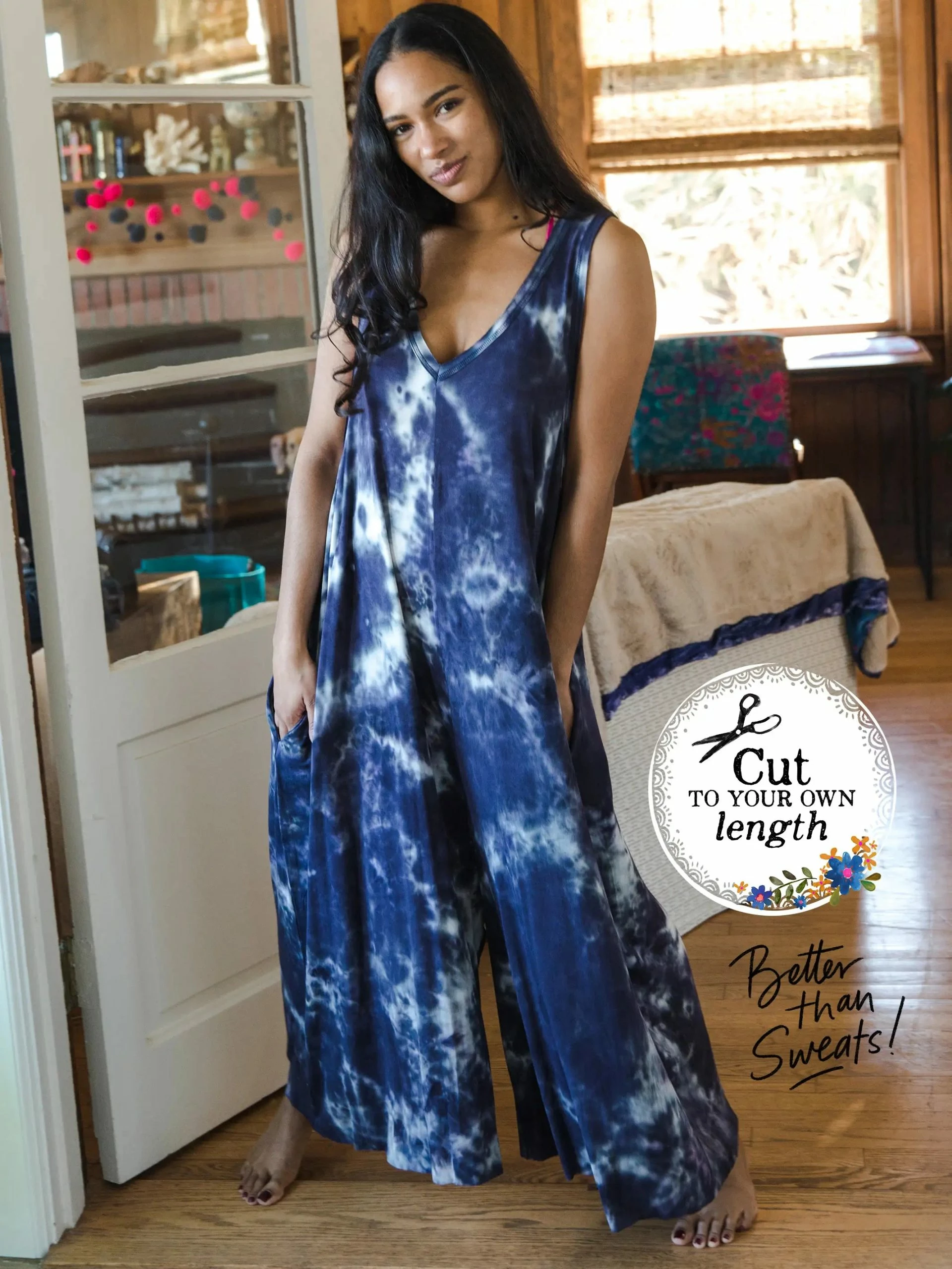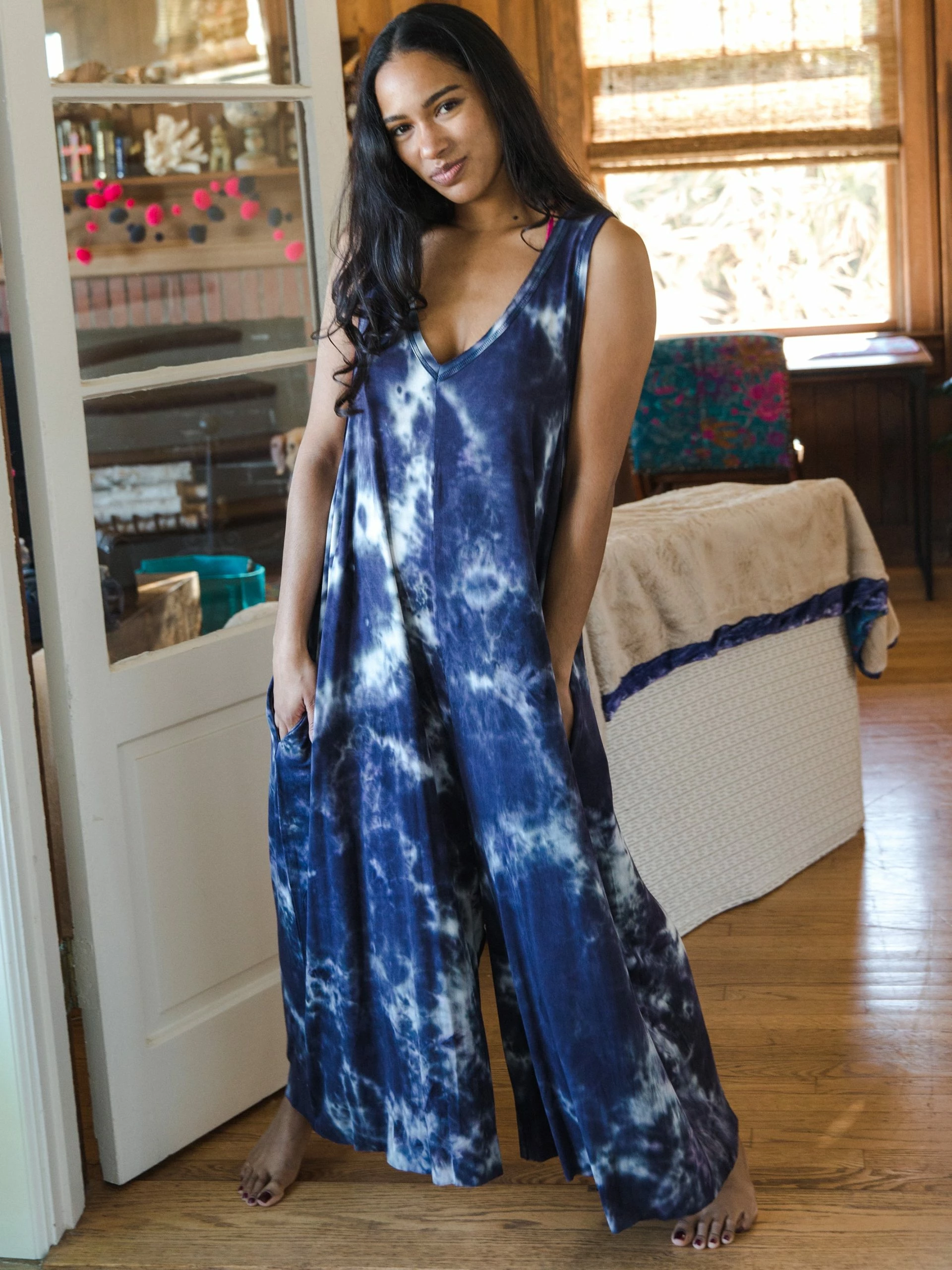 Natural Life Knit V-Neck Jumpsuit – Midnight Tie-Dye