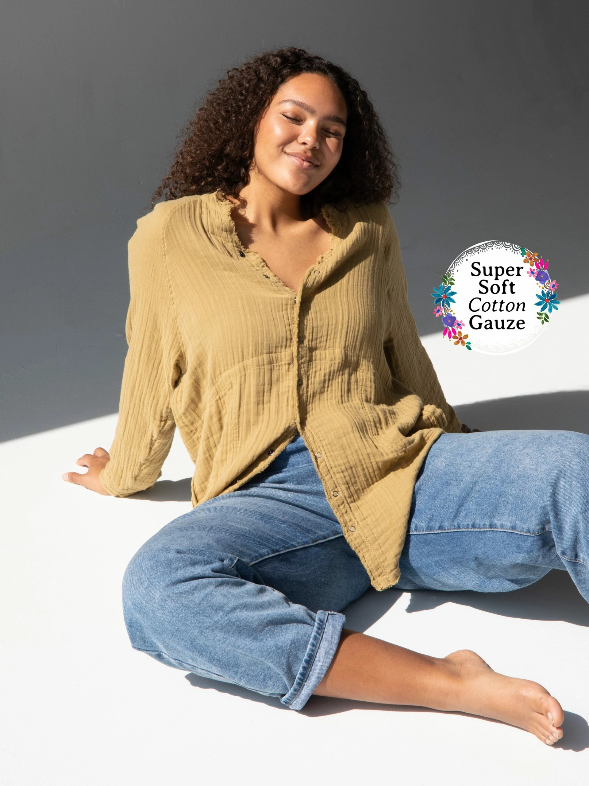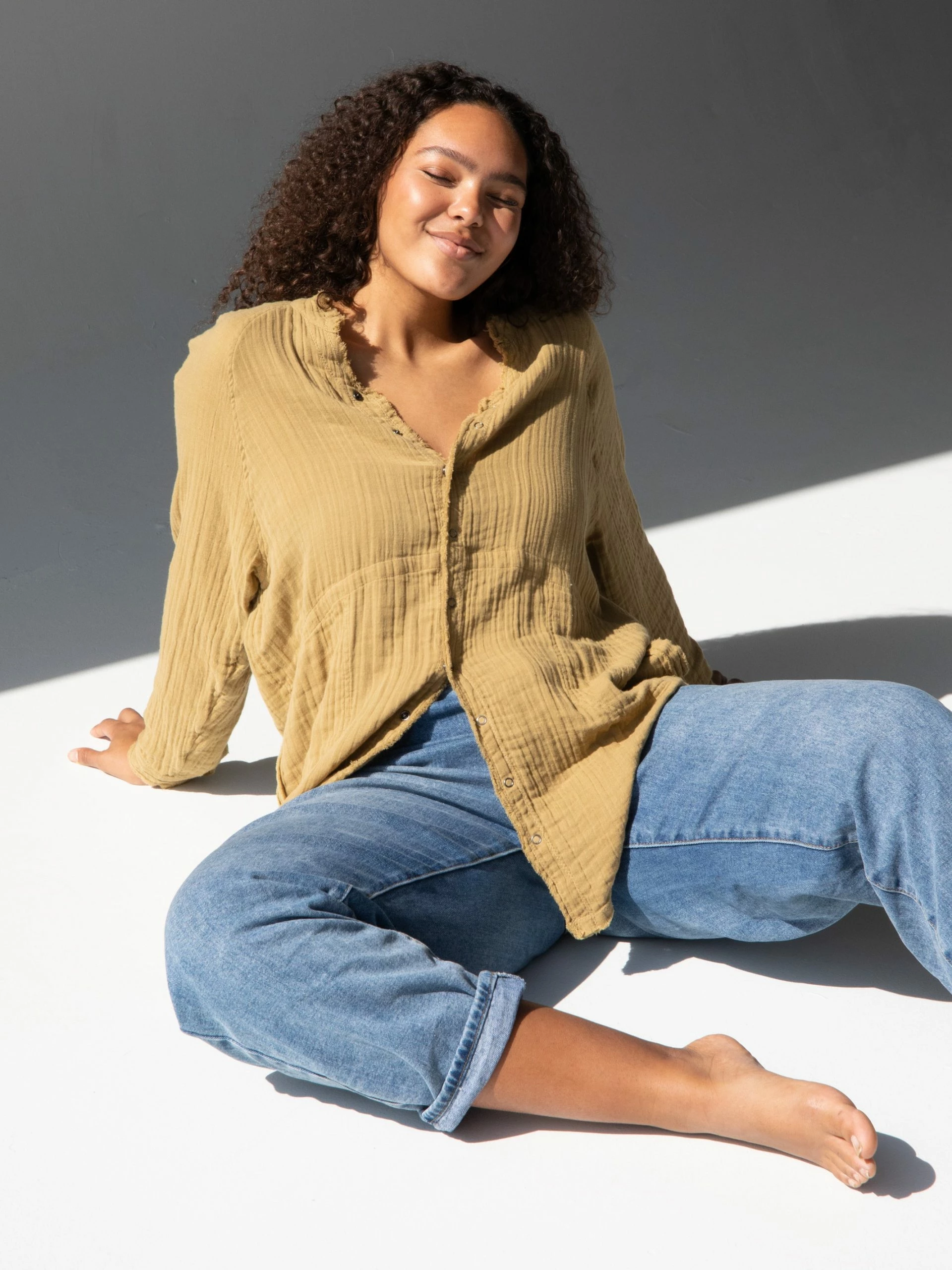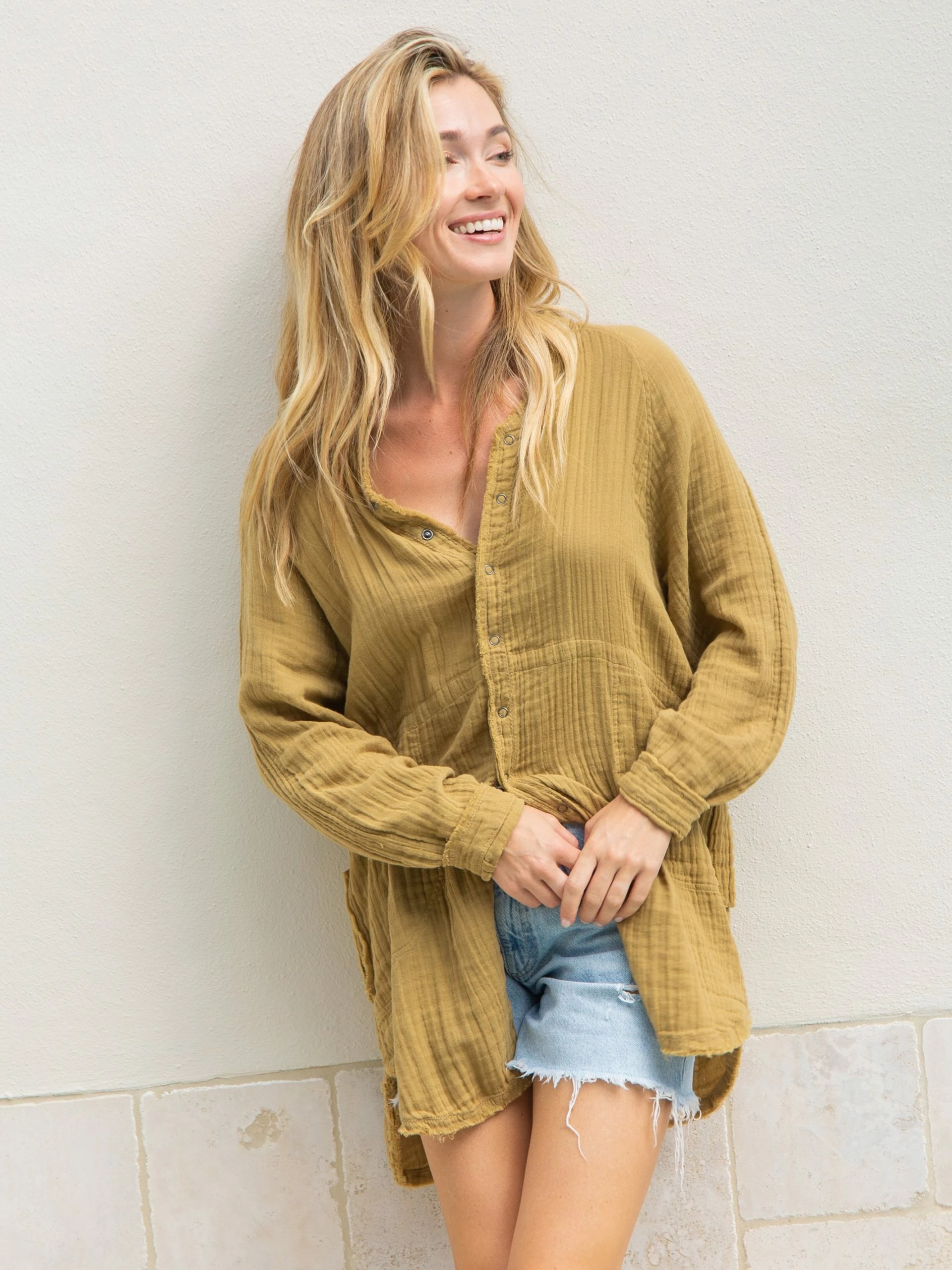 Obsessed with the Laid Back Button Down! It’s made from a cotton gauze material and is so comfy & easy to wear! It looks so good on everyone and we love pairing it with our Bike Shorts! Oh, and it even has pockets!