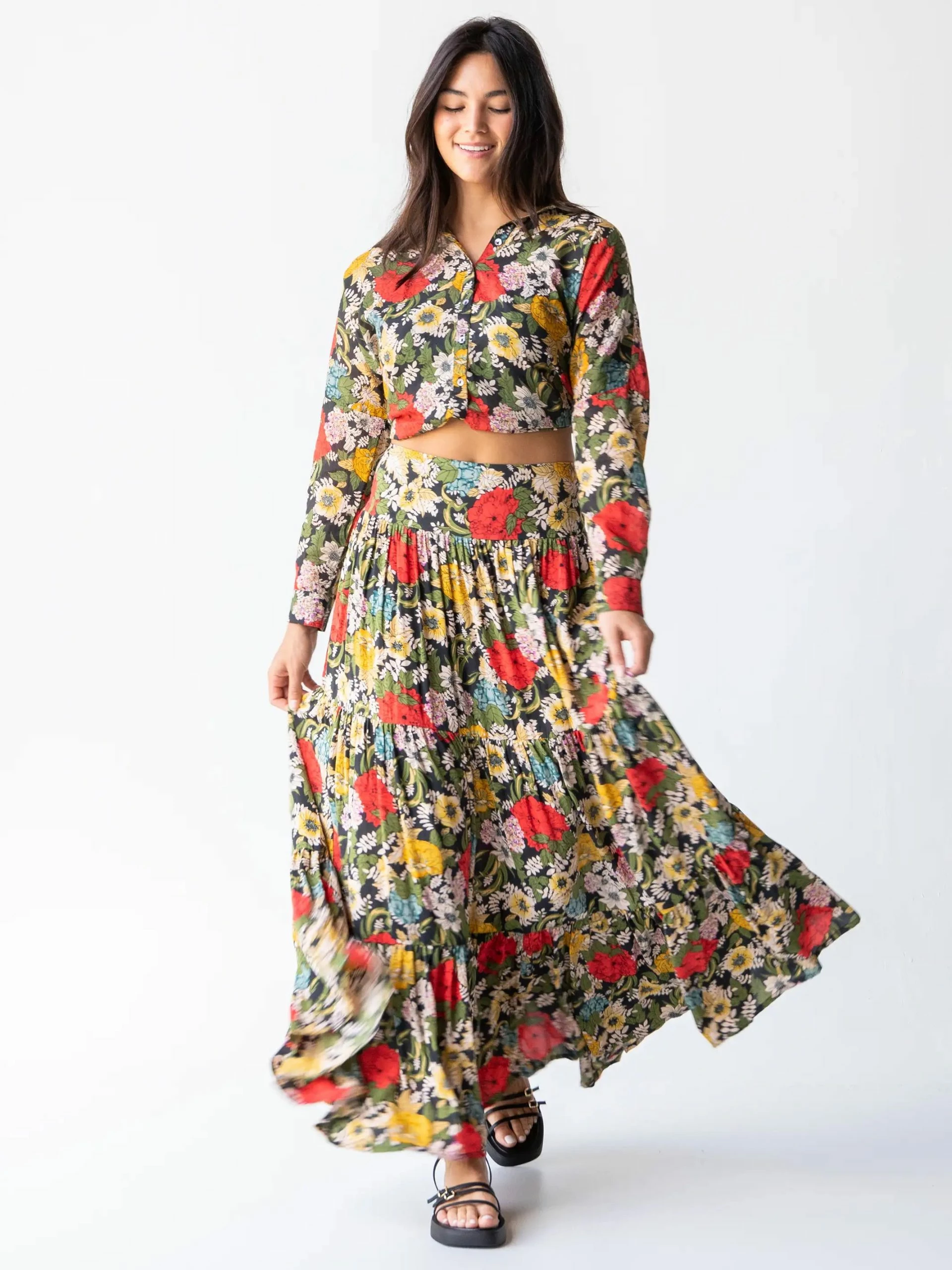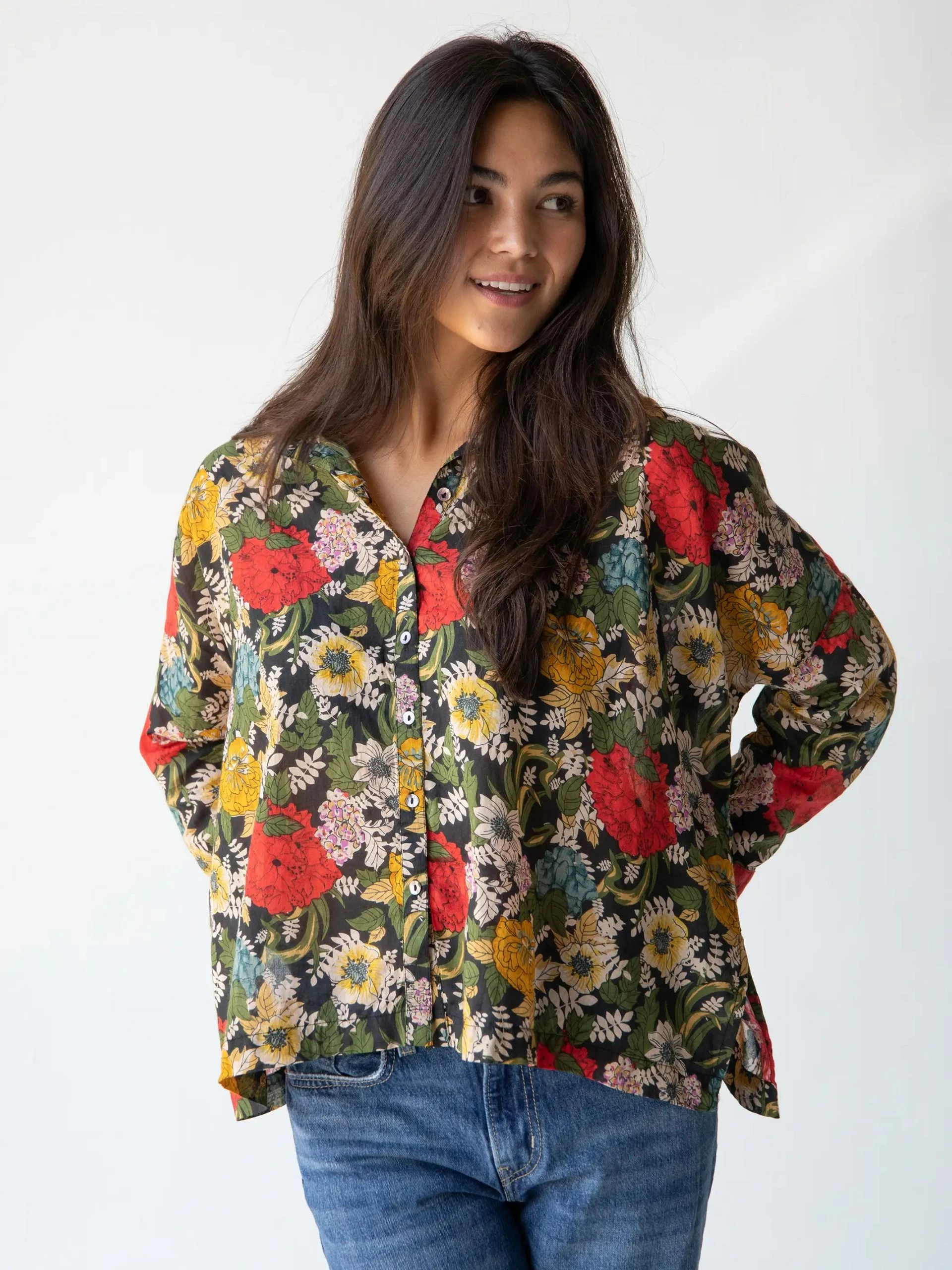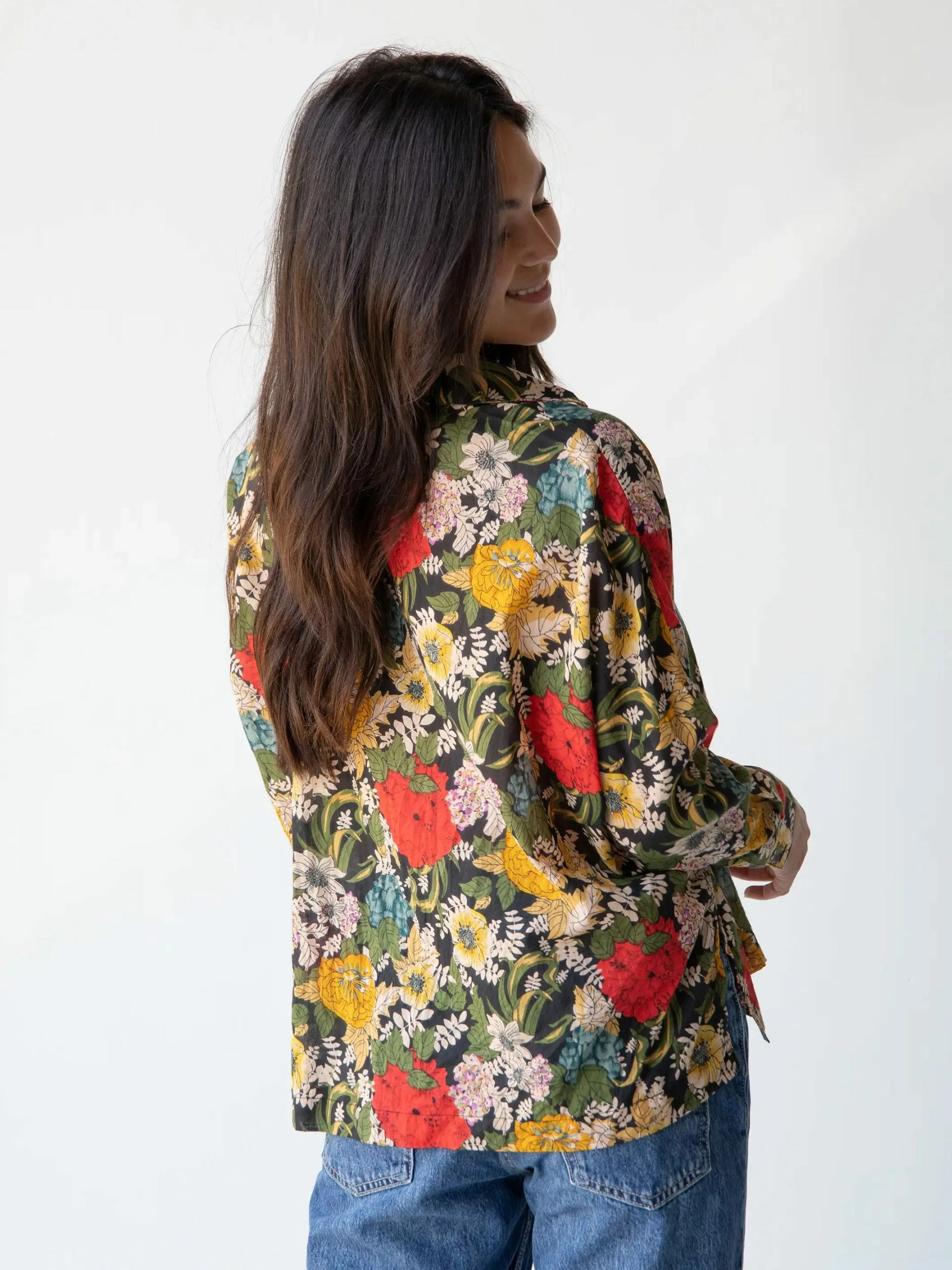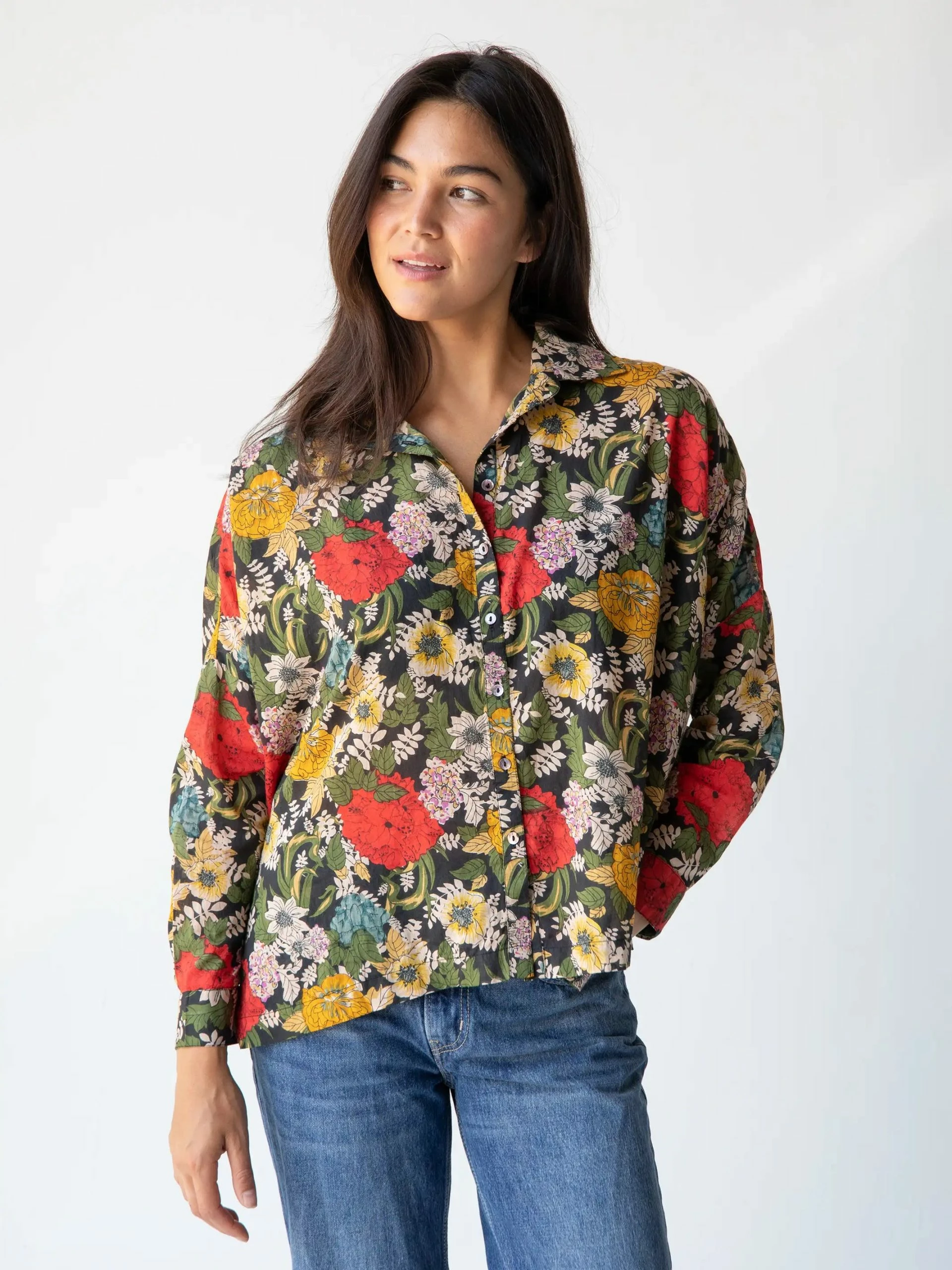 This playfully chic blousy top is here to jazz up your wardrobe! With its lively floral design and unique attributes, this shirt brings a burst of color and excitement to your collection. The relaxed silhouette and dropped shoulders create a lovely drape on the sides for a classically cool look. Play around with its buttons and explore the endless styling options of this top! Whether you leave it fully open layered with a cute basic tank top, tie it up, or leave just a few unbuttoned, the Lara Button Down looks super stylish and chic no matter what!