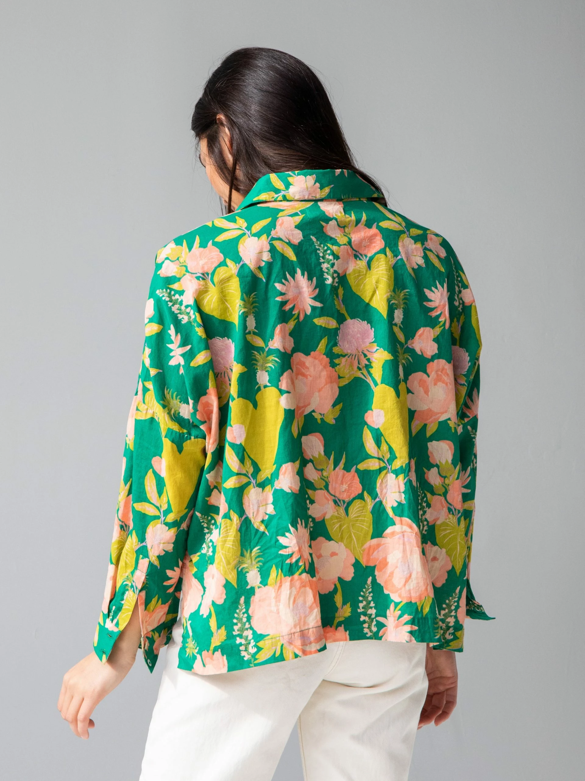 This blouse will add variety and fun to the shirts in your closet with its bright floral pattern and special features! The dropped shoulders and relaxed silhouette give this cute shirt a drape on the sides for a little extra flair. Â Since it unbuttons, you can even tie it up in the front! You might even want to mix and match it with the maxi skirt in the same print!Â