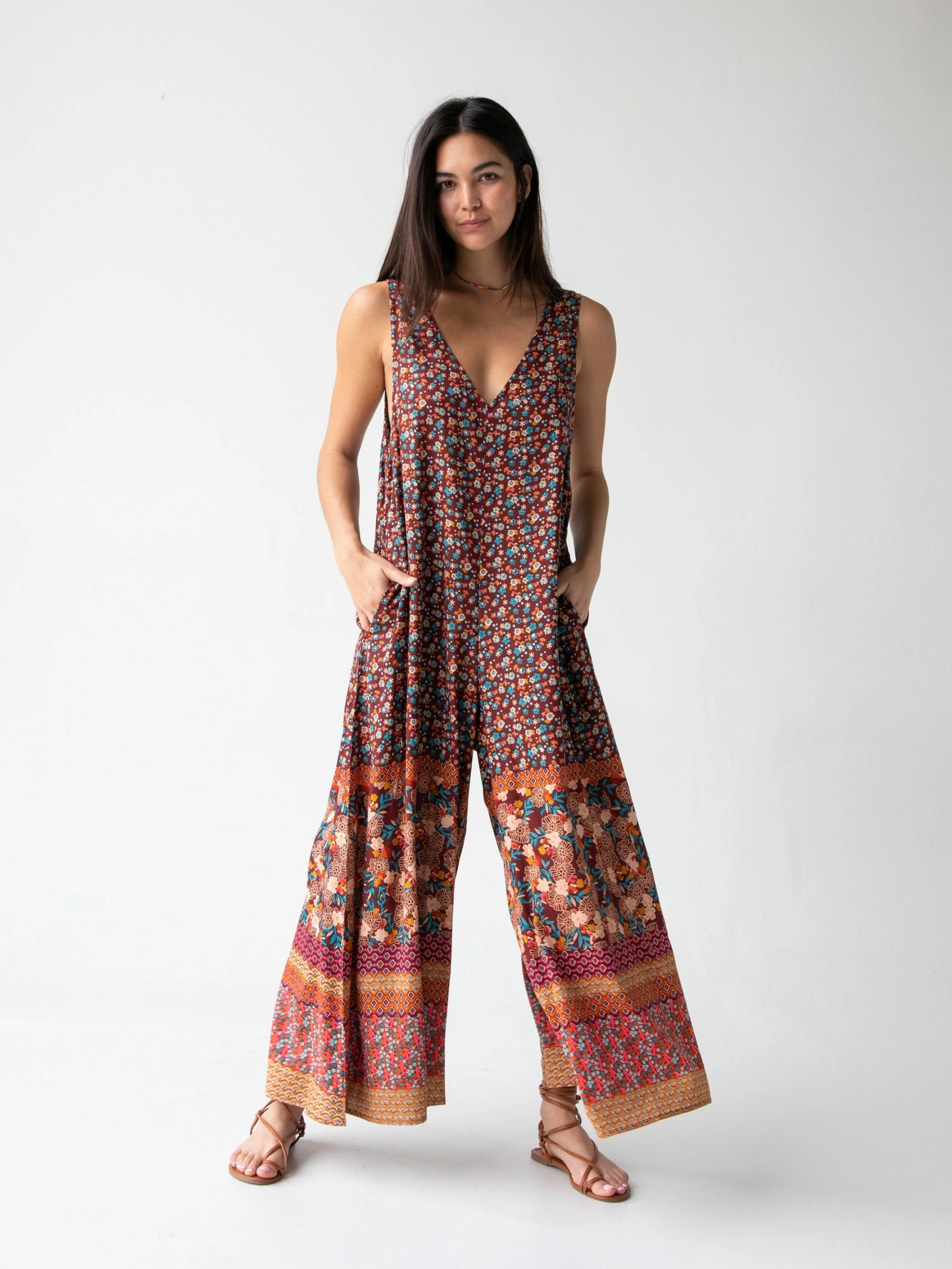 Natural Life Let’s Just Go Wide-Leg Jumpsuit – Tan Border Print