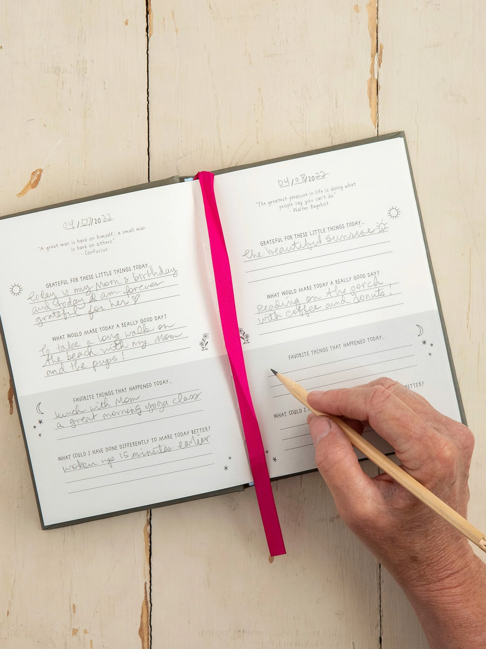 The Live Happy Daily Journal is one of our favorite treasures! This little book is your very own and the ideal space in which to “become”. Each day, the pages will prompt you to remember what you are grateful for each morning and remind you to reflect on how you can be better each night. The little details you capture of your everyday life will help you become the best version of yourself! The journal is 365 pages (you can fill in the date yourself) and each page starts with an inspirational quote at the top. It even comes with a ribbon to mark your spot for the next morning!
