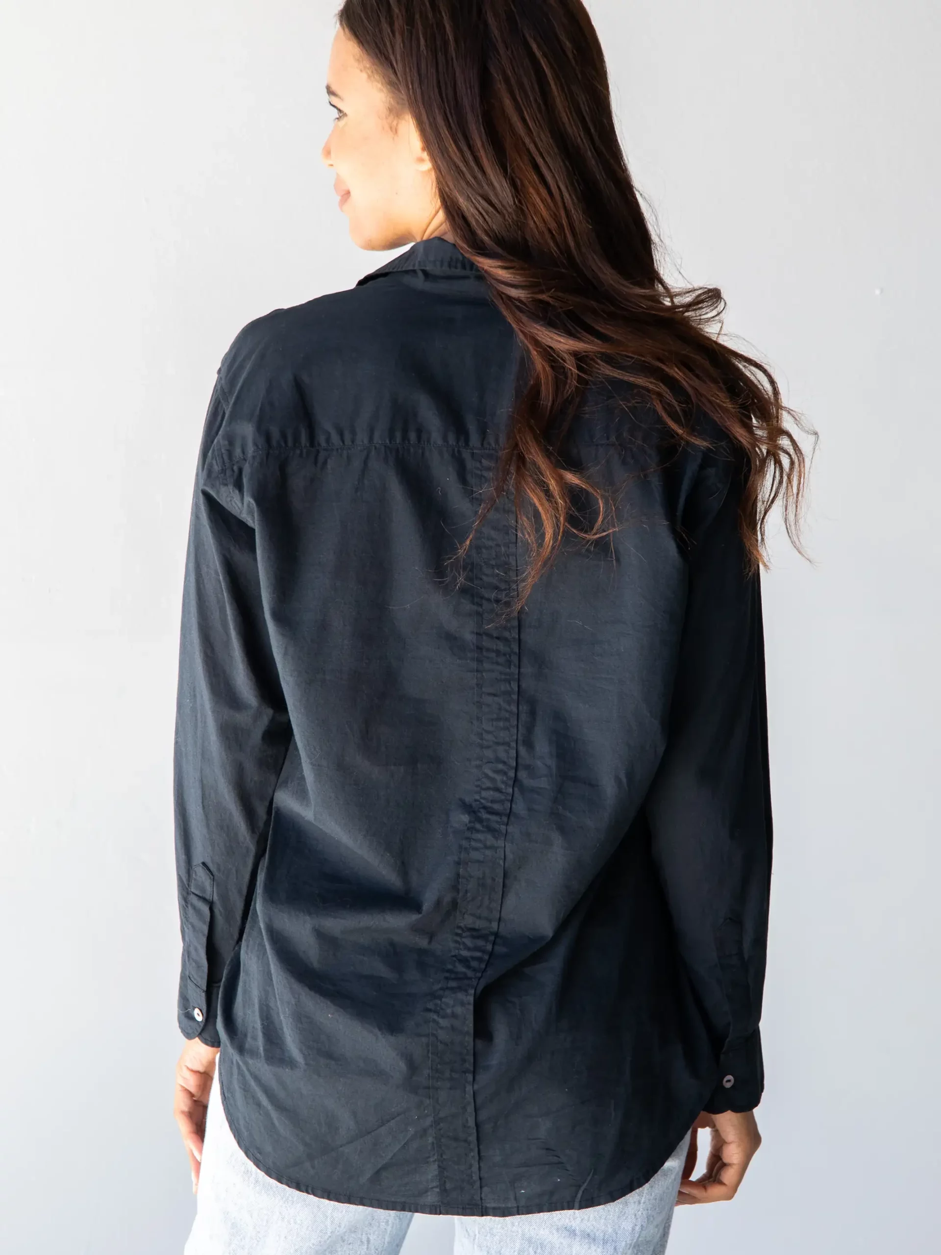 We love to create versatile clothing – and the Lived-in Button Down is no exception. Wear it as a shirt-jacket over ANYTHING; wear it alone with jeans, shorts, skirts, etc. – so many options! You can even throw this on over your bathing suit and keep it into your beach bag. Layer this shirt with a tank or tee for any occasion. Change the look entirely by wearing it over one of our jumpsuits or dresses – you’ll love the way it’s so easy to style. The lived-in look and softness only get better with age! This 100% cotton shirt has a casual, wrinkled look and is meant to be oversized for comfort!